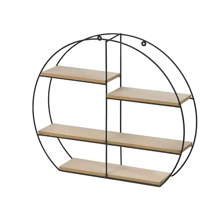 Stylová nástěnná police DESIO TYP 2 vyniká svým moderním zpracováním a nadčasovým vzhledem. Její oválné kontury dodávají interiéru jemnost a působí skvěle v jakékoliv místnosti. Konstrukce je provedena z černého kovu, zatímco poličky jsou vyrobeny z přírodního dřeva s teplým odstínem.