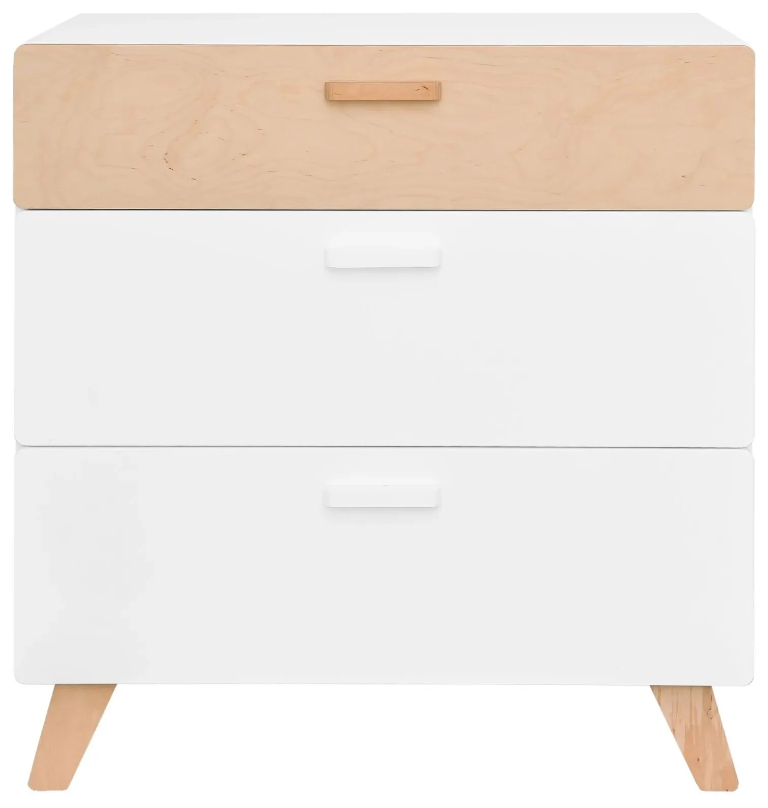Korpus je z odolné laminované desky odolné vůči vlhkosti a snadno se udržuje. Stabilitu zajišťují bukové dřevo nohy. Moderní kolejnice Blum s uzavíracím systémem umožňují tiché a bezpečné otevírání zásuvek. Celý nábytek je ošetřen certifikovanou, nealergenní barvou, což zajišťuje bezpečí pro vaše dítě. Komoda nabízí tři prostorné zásuvky, možnost instalace přebalovacího pultu a je vhodné ji upevnit na zeď pro zvýšení bezpečnosti. Rozměry 90 x 50 x 90 cm umožňují flexibilní využití v dětském pokoji. Údržba je jednoduchá – stačí otřít hadrem navlhčeným vodou nebo speciálním prostředkem na péči o nábytek. Tato komoda je nejen praktickým, ale i designovým doplňkem, který pomůže udržet dětský pokoj přehledný a útulný.