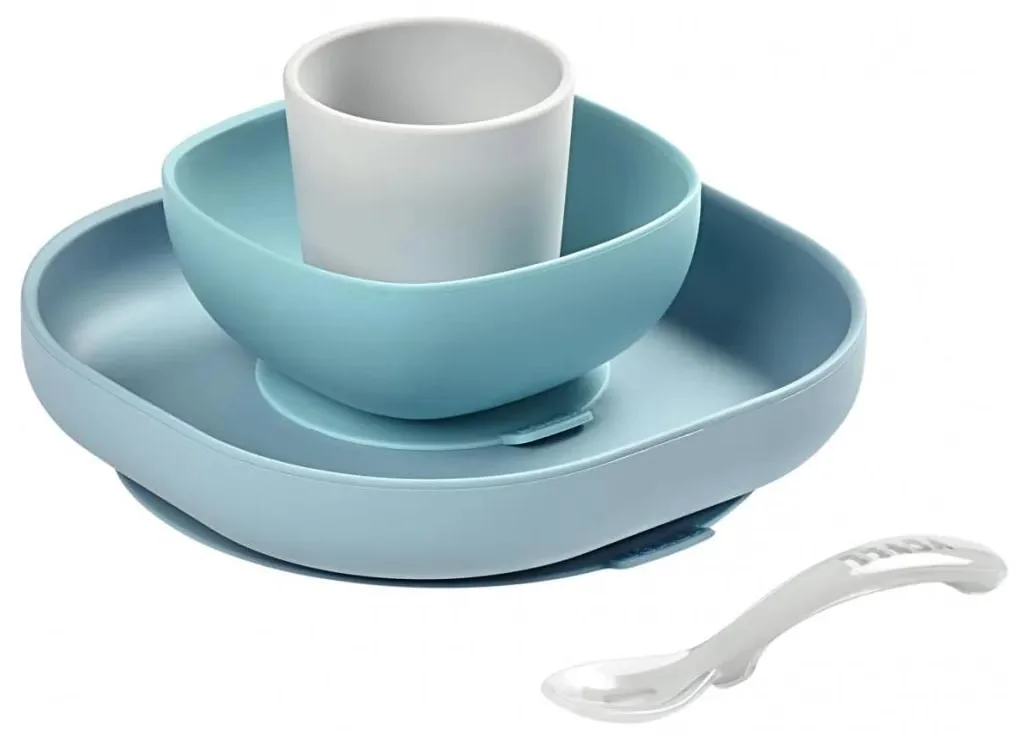 Oblíbená dětská jídelní sada Jungle obsahující talíř, misku, hrnek a lžičku je navržena tak, aby usnadnila první samostatné krmení vašeho dítěte. Díky přísavce na misce a talíři lze tyto nádobí upevnit ke stolu nebo dětské židličce, což pomáhá předcházet převrácení nebo posunutí. Ergonomický tvar jednotlivých částí umožňuje snadné nabírání jídla, zatímco měkký silikonový materiál je nejen bezpečný, ale i příjemný na dotek. Tento odolný silikon odolává vysokým i nízkým teplotám, nebarví se a je vhodný do myčky i mikrovlnné trouby. Ideální volba pro děti od 4 měsíců, kteří začínají s prvními samostatnými krmnými pokusy. S touto sadou si vaše dítě užije pohodlné a bezpečné stolování, které podporuje jeho samostatnost a radost z jídla.