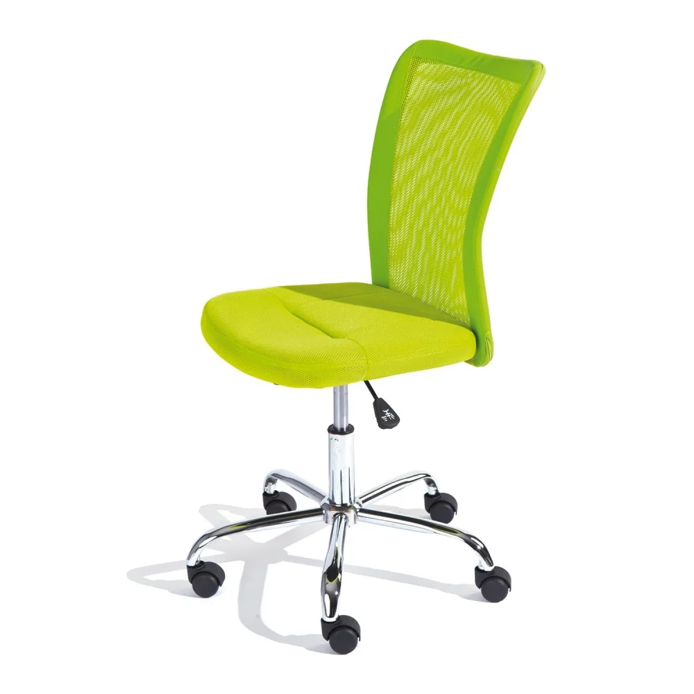 Pro děti určená kancelářská židle SUEREN v sytě zelené barvě oživí každý psací kout a podpoří pozitivní atmosféru při úkolech. Prodyšný síťový potah zajišťuje komfort i během horkých dnů, zatímco stabilní chromovaný kříž s plastovými kolečky umožňuje snadný pohyb po pokoji.