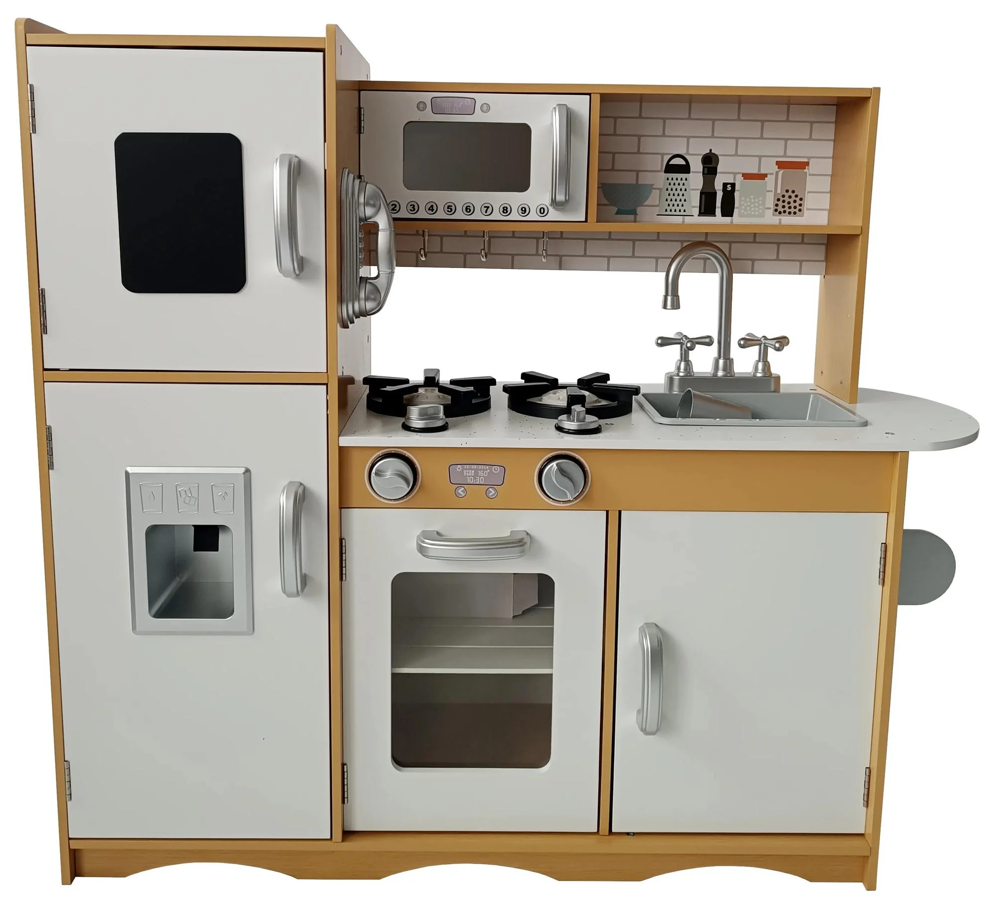 Součástí kuchyňky jsou světelné a zvukové efekty, například LED osvětlení a knoflíky, které při otáčení vydávají autentické zvuky sporáku. Součástí balení jsou praktické příslušenství, včetně hrnce, pánve, naběrák, lopatky a utěrky, díky nimž si dítě může vytvořit vlastní kulinářské zážitky. Odnímatelný dřez umožňuje dětem naučit se základům mytí nádobí, což podporuje jejich samostatnost.