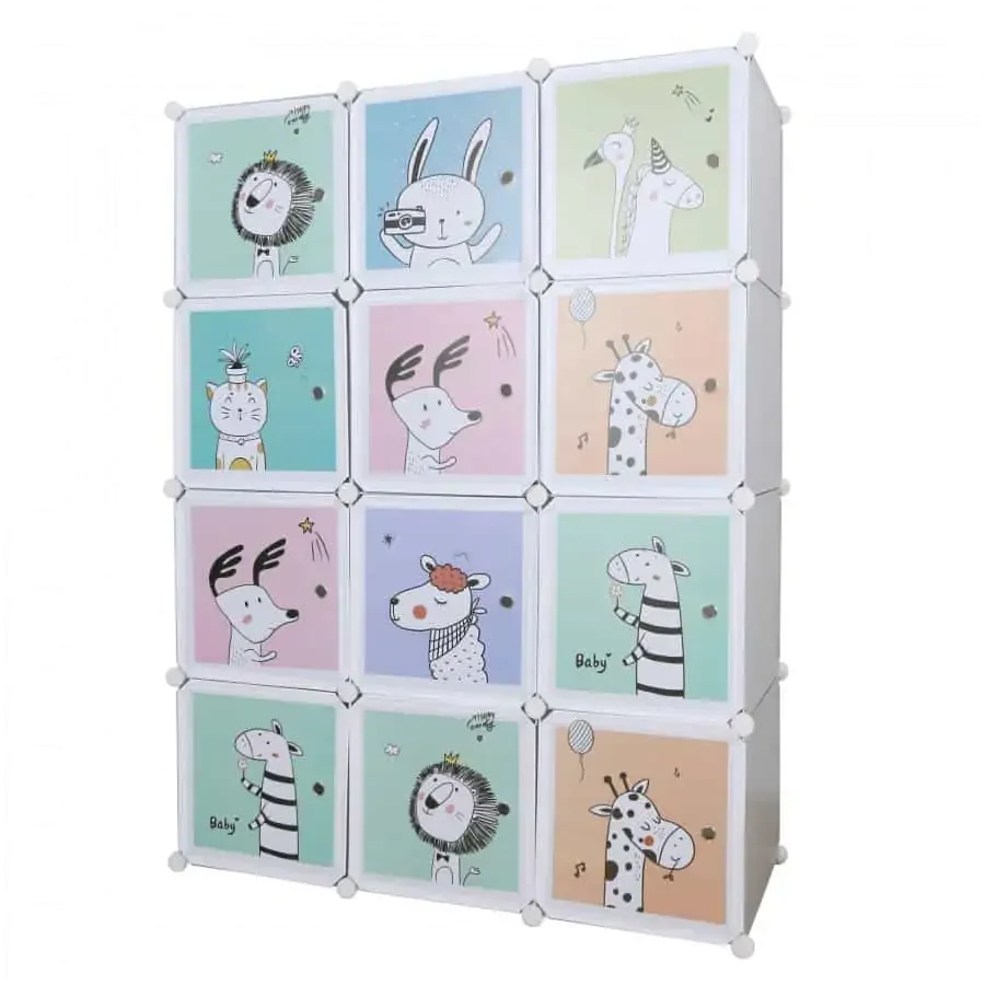 HAKON je dětská modulární skříň se zvířecími motivy, která se hodí do každého dětského pokoje pro kluky i holky. Modulární konstrukce umožňuje sestavit nábytek podle prostoru a potřeb dítěte. Skládá se z kovového rámu a 7 plastových úložných boxů, z nichž dva disponují věšákovou tyčí. Každý box unese až 5 kg; pro dlouhou životnost je důležité rovnoměrně rozložit zatížení. Skříň je plastová, v šedé barvě, dvířka zdobí dětský vzor zvířat. V balení najdete upevnění ke stěně, které je doporučeno používat spolu s výrobkem, aby nedošlo k převrácení. Montáž je rychlá a demontáž stejně snadná; nejprve smontujete spodní část, poté boční panely a nakonec vrchní část prvního patra. Kovový rám se spojuje plastovými spojkami a v konstrukci je zabudovaný magnet, který zabraňuje samovolnému otevírání dvířek. Plast je pevný a odolný vůči mechanickému poškození. Díky modulárnímu uspořádání lze skříň flexibilně přizpůsobit prostoru a potřebám dítěte. Bezpečnost zajišťují silný magnetický zámek dvířek a pevné ukotvení ke stěně, které minimalizuje riziko převrácení i při hravém použití.