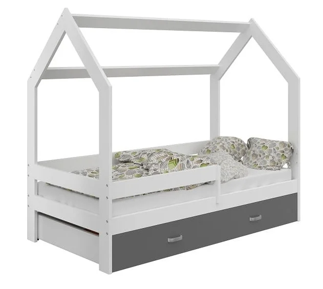 Dětská postel o rozměru 80×160 cm je provedena v bílé barvě a doplněná o šedou zásuvku pro ukládání hraček a ložního prádla. Do ceny není zahrnut rošt ani matrace; pro správnou výšku spací plochy doporučujeme matraci 80×160 cm s výškou 7, 8 nebo 12 cm.