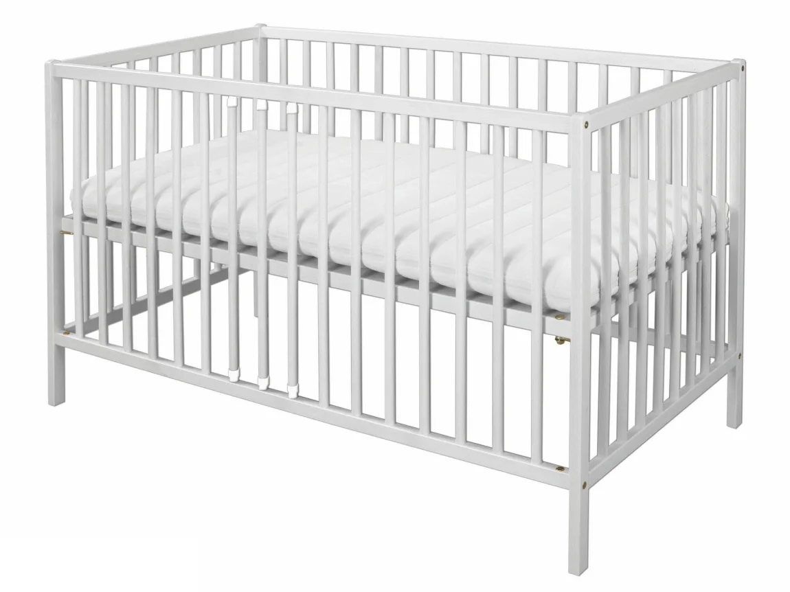 Dětská postýlka ADISHI v bílé barvě kombinuje stabilní konstrukci z masivního buku s nadčasovým vzhledem, který se hodí do každé dětské ložnice. Součástí balení je rošt; matraci je potřeba pořídit zvlášť a pro správný rozměr zvolte 60x120 cm.