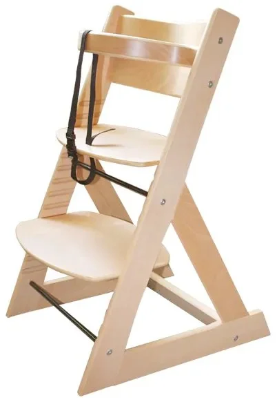Díky stabilnímu bezpečnostnímu pásu dítě zůstává na místě, zatímco si užívá jídlo nebo hraní. Židle je snadno sestavitelná a ideální pro děti schopné samostatného sezení. Díky přírodní textuře dřeva působí velmi esteticky a harmonicky. Vhodná do každé dětské jídelny či herny, doporučujeme ji pro děti od 3 let. Při používání je nutné dítě stále sledovat, aby byla zajištěna maximální bezpečnost.