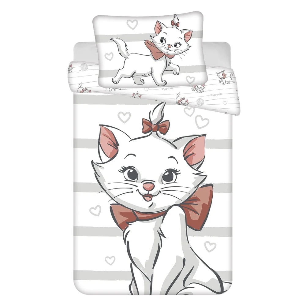 Vysoce kvalitní bavlněné dětské povlečení s roztomilým motivem Marie Cat a ozdobným mašličkovým designem je ideální volbou pro pohodlný spánek vašeho dítěte. Díky přírodní bavlně je materiál příjemný na dotek a vhodný pro citlivou dětskou pokožku.