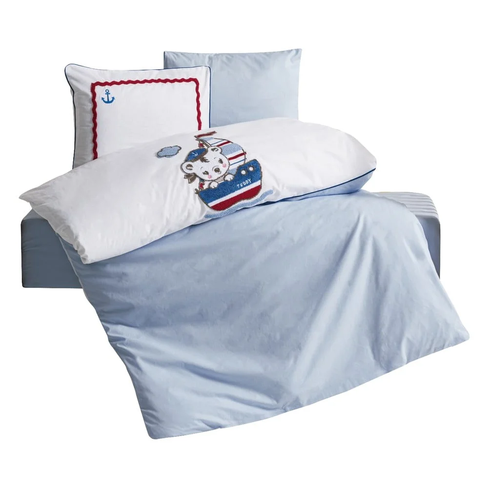 Rozkošné dětské povlečení v bílo-modrém provedení je ideální volbou pro vaše nejmenší. Tento set, který obsahuje čtyři části v rozměru 100x150 cm, je vyroben z kvalitní bavlny, jež je příjemná na dotek a zajišťuje pohodlí během spánku.