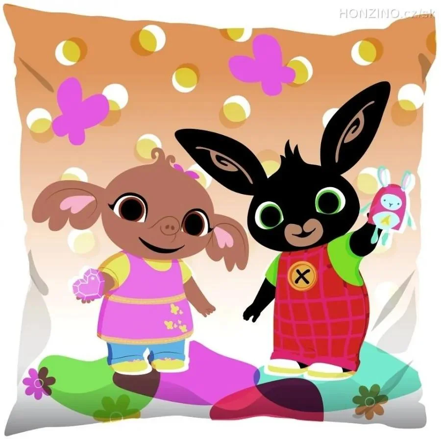 Tento měkký a příjemný dětský polštářek s motivem oblíbených postaviček Bing a Sula je ideální doplněk do dětského pokojíčku. Vyroben z jemného mikroplyše, nabízí z jedné strany obrázek zajíčka Binga s jeho kamarádkou slonicou Sulou, zatímco z druhé strany je barevný motiv Binga na pestrobarevném pozadí.