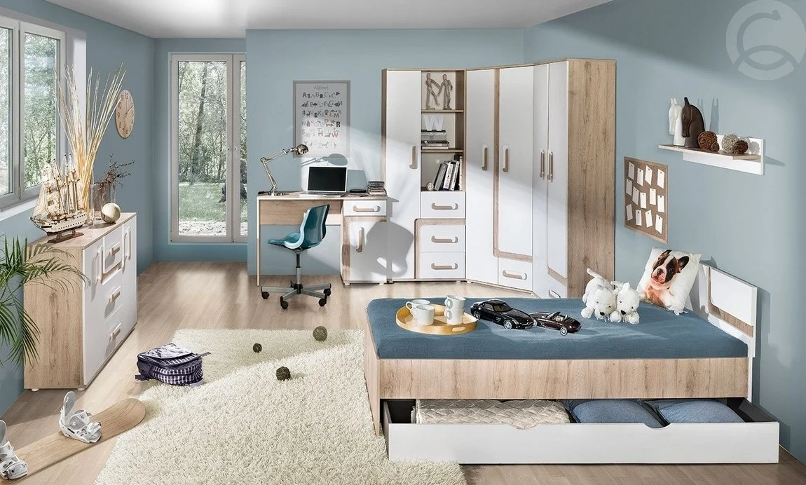 Dětský pokoj ORAKI – dub jasný / bílá Dětské sestavy