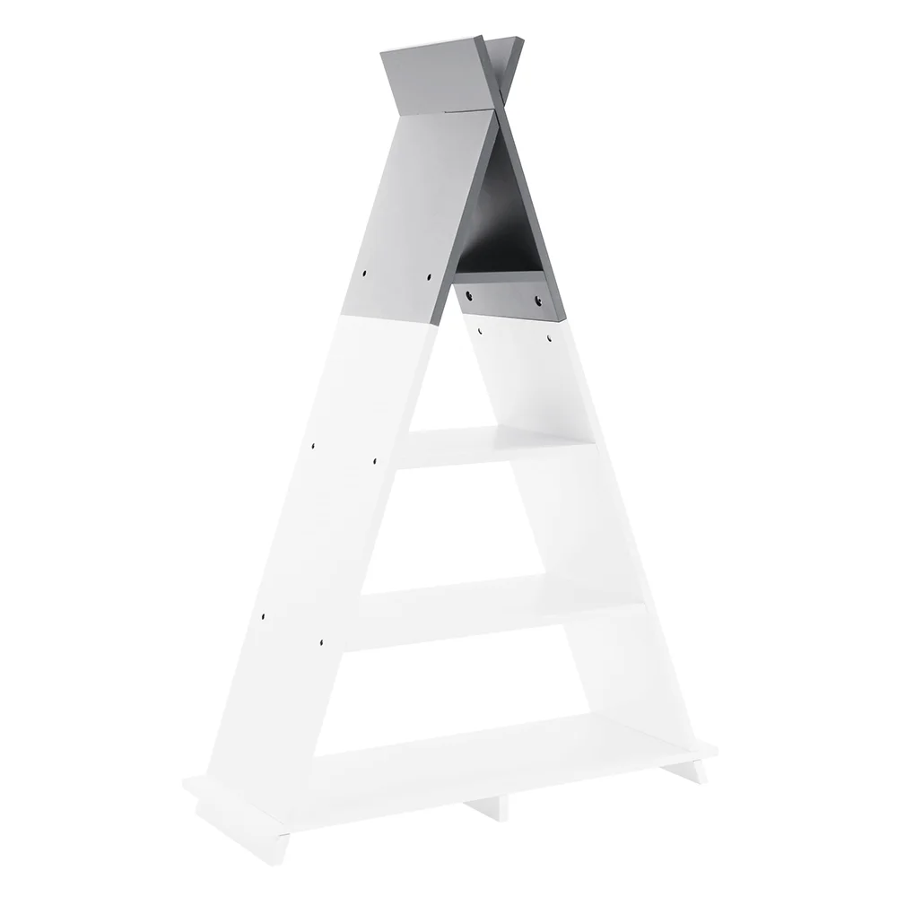 Praktický dětský policový regál BARNIE v kombinaci bílé a šedé se hodí do každého dětského pokoje. Každá police unese až 3 kg, takže děti mohou bezpečně ukládat menší knihy, hračky a školní potřeby.