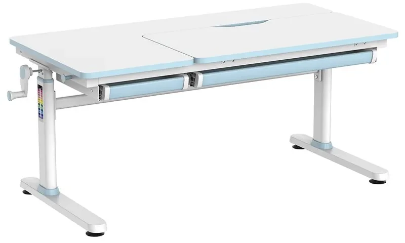 Díky praktickým zásuvkám a háčku na brašnu nabízí dostatek úložného prostoru pro školní potřeby, zatímco zaoblené hrany a protiskluzové nohy zajišťují bezpečnost a stabilitu. Moderní bílo-modrý design se stane ozdobou každého dětského pokoje a podporuje správné držení těla při psaní, kreslení či čtení. Tento stůl je ideální volbou pro rodiče, kteří chtějí svým dětem poskytnout komfortní a funkční pracovní místo na dlouhé roky. Pro dokonalé pohodlí doporučujeme kombinovat s rostoucí židlí z naší nabídky, čímž zajistíte zdravé sezení a správné držení těla vašeho dítěte.