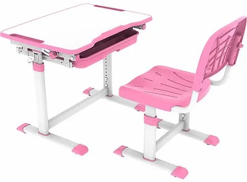 Praktický a modulární dětský set PRESTO je ideální volbou pro malé školáky a děti od tří let. Tento elegantní a funkční nábytkový set v bílo-růžové kombinaci nabízí optimální využití prostoru díky nastavitelné výšce a sklonu pracovní desky stolu a výškově nastavitelné židli s ergonomickým sedákem a opěrkou.
