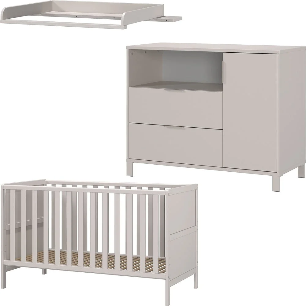Kompletní dětský set Alkmaar od Germania představuje spojení praktického designu a vysoké funkčnosti, které ocení každý rodič. Postýlka s rozměry 145 x 86 x 76 cm je vyrobena z odolného masivního dřeva a HDF, přičemž nabízí nastavitelný rošt a možnost přeměny na juniorskou postel, čímž roste s vaším dítětem.