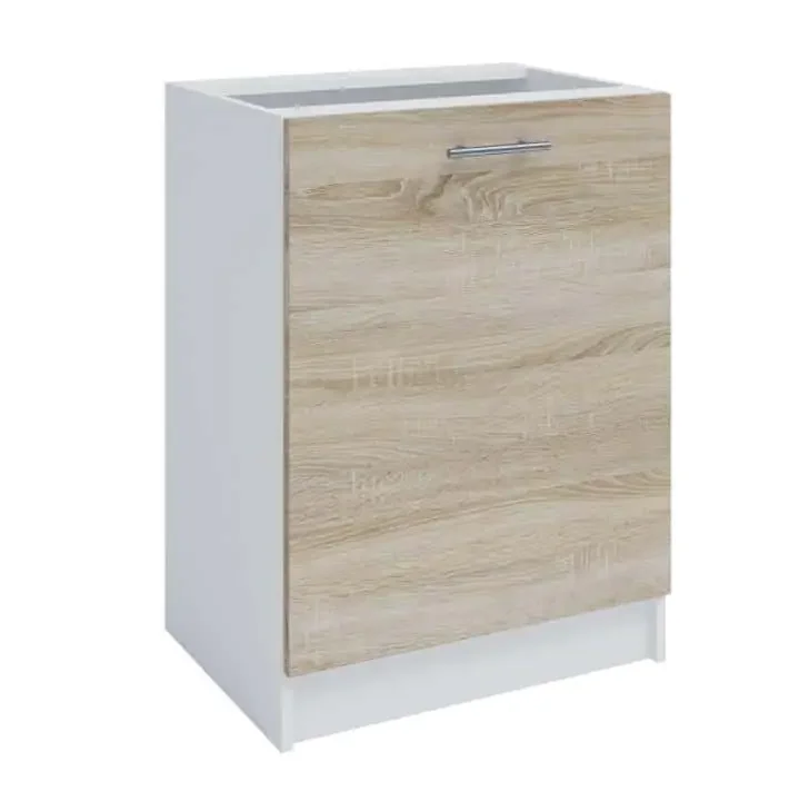 Dolní skříňka 60 cm z modulárního kuchyňského programu FABIANA nabízí flexibilní stavební prvek pro vaši linku. Díky možnosti kombinace jednotlivých dílů v rámci tohoto programu si rozvržení kuchyně přizpůsobíte přesně podle prostoru a představ; další komponenty najdete v souvisejícím zboží. Materiál je DTD laminovaná, která zajišťuje dlouhou výdrž a snadnou údržbu. Povrch v dekoru dub sonoma / bílá působí moderně a hodí se do různých stylů interiéru. Pracovní deska k této skříňce není součástí; dodáváno je v demontu pro pohodlnou dopravu a rychlou montáž. Díky modulárnosti lze skříňky jednoduše kombinovat a upravovat uspořádání podle potřeb. Laminovaný povrch je odolný vůči běžnému opotřebení a snadno se čistí. Celkově jde o cenově dostupné a praktické řešení pro moderní kuchyni.