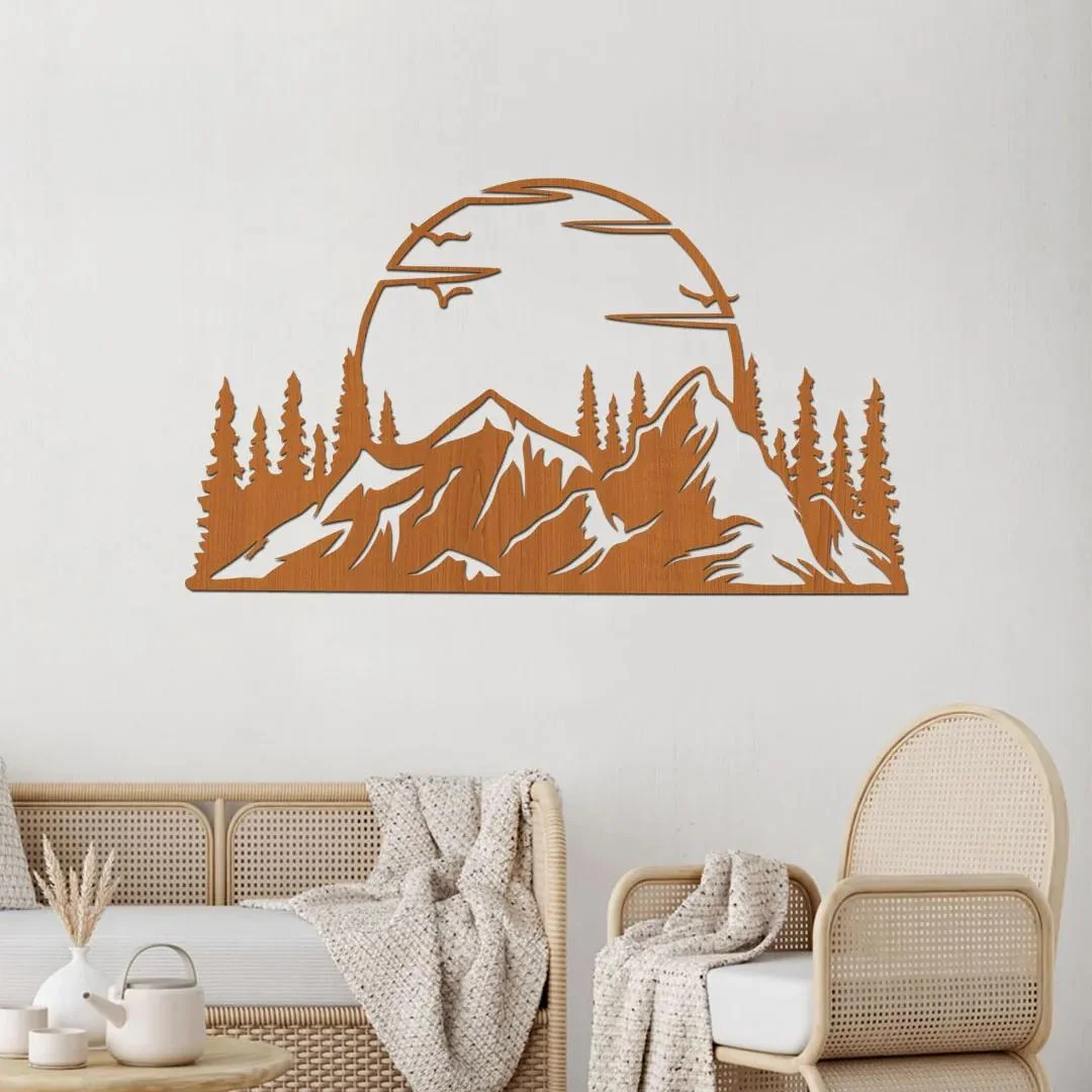 Oživte svůj interiér působivou dřevěnou dekorací s motivem hor při západu slunce. Tento elegantní kousek o rozměrech 40x23 cm přináší do vašeho domova atmosféru klidu a harmonie, kterou si zamilujete každý den.