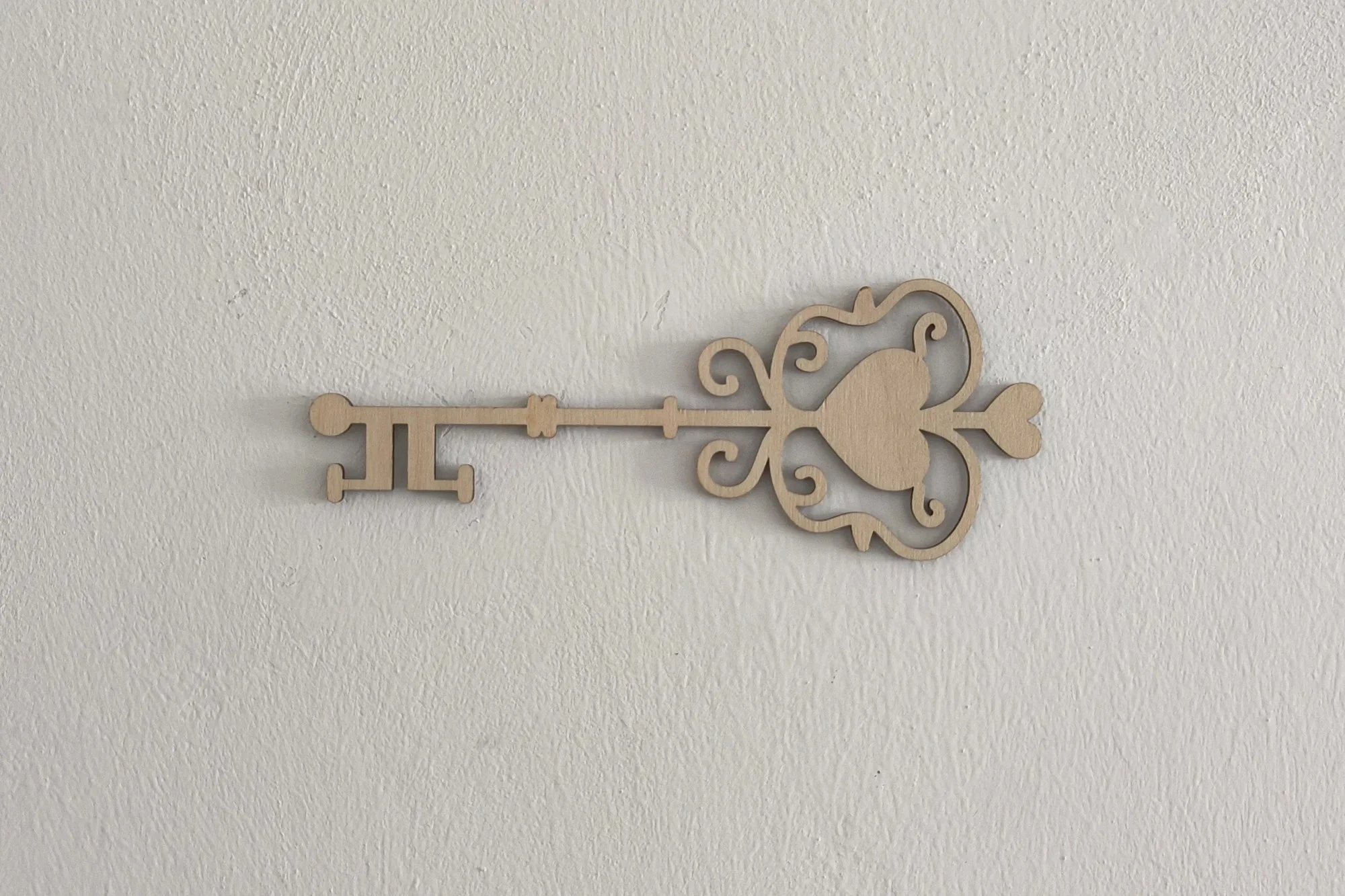 Oživte svůj interiér originální dřevěnou ozdobou s motivem klíče a srdce, která přináší do prostoru nádech romantiky a tajemna. Vyrobena z 3 mm překližky, snadno ji připevníte na stěnu pomocí přiložené oboustranné lepící pásky.