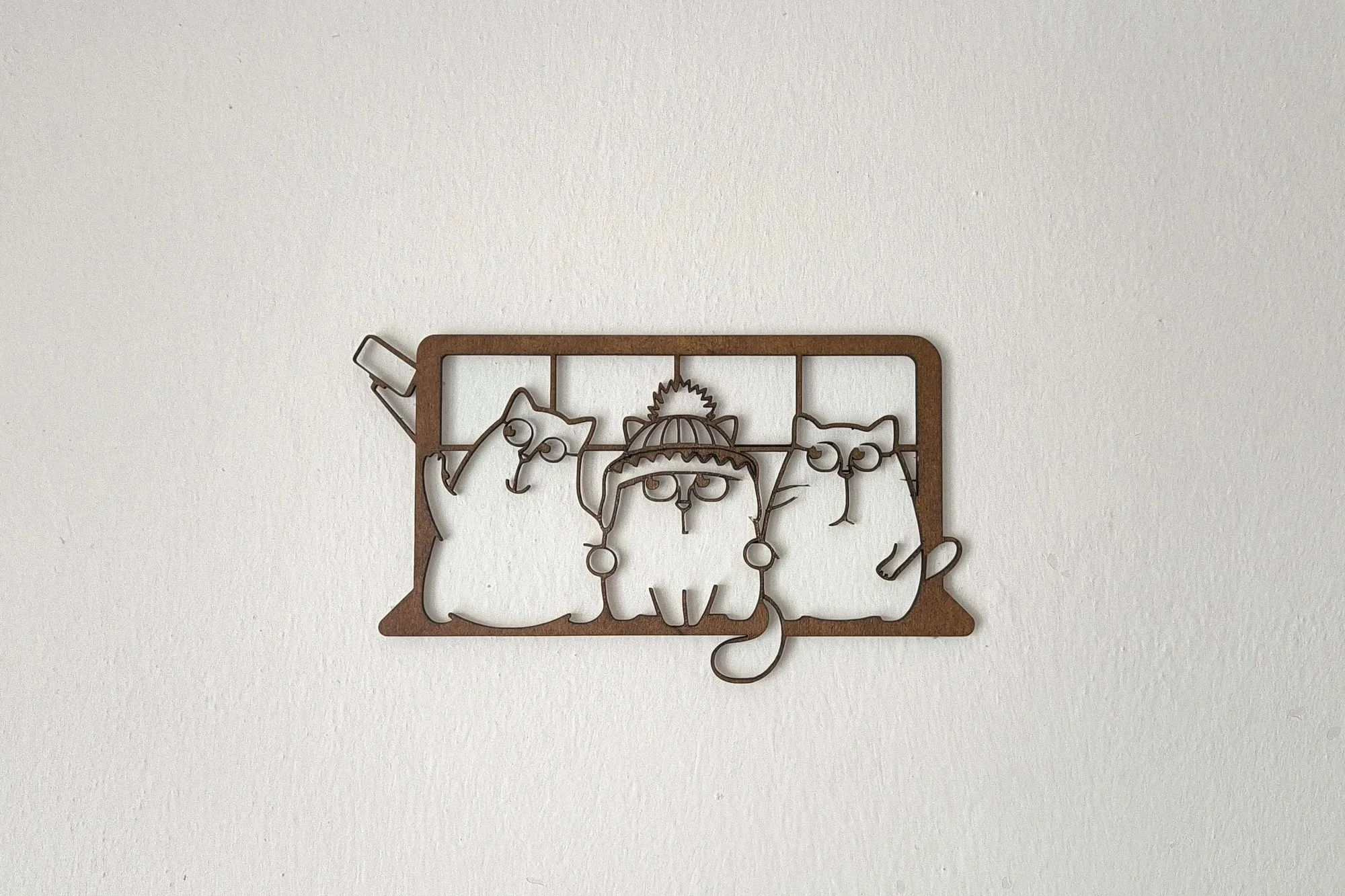 Oživte svůj interiér originální a hravým motivem s naší dřevěnou dekorací ve tvaru roztomilých kočiček. Vyrobena z kvalitní 3 mm překližky, snadno ji připevníte na stěnu pomocí praktické oboustranné lepící pásky, která je součástí balení.