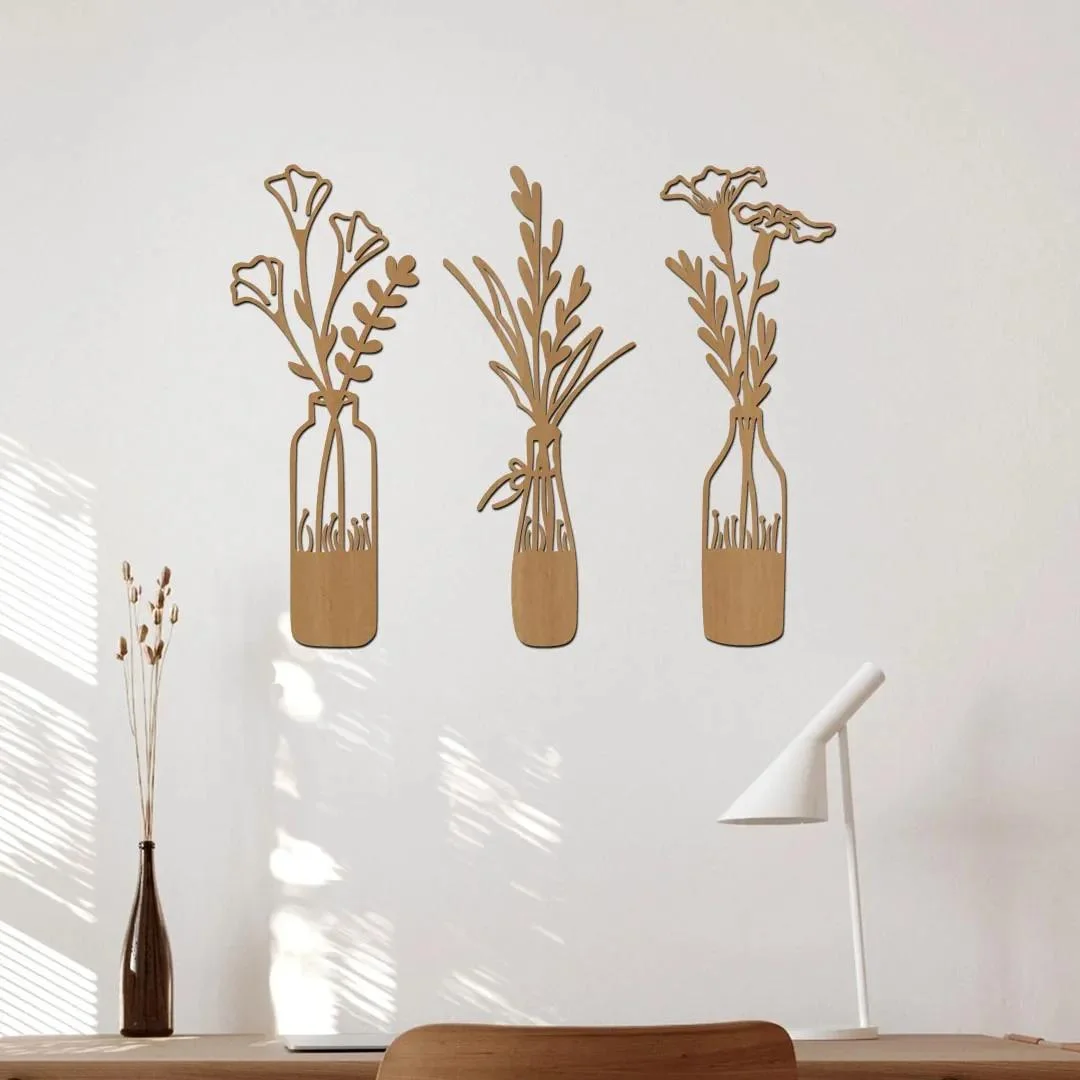 Přineste kousek klidné louky do vašeho domova s jedinečnou dřevěnou dekorací „Luční květiny ve váze“. Tento ručně vyřezávaný a detailně propracovaný kus z pevného dřeva zachycuje krásu divokých květin, které se zdánlivě vynořují z elegantní dřevěné vázy.