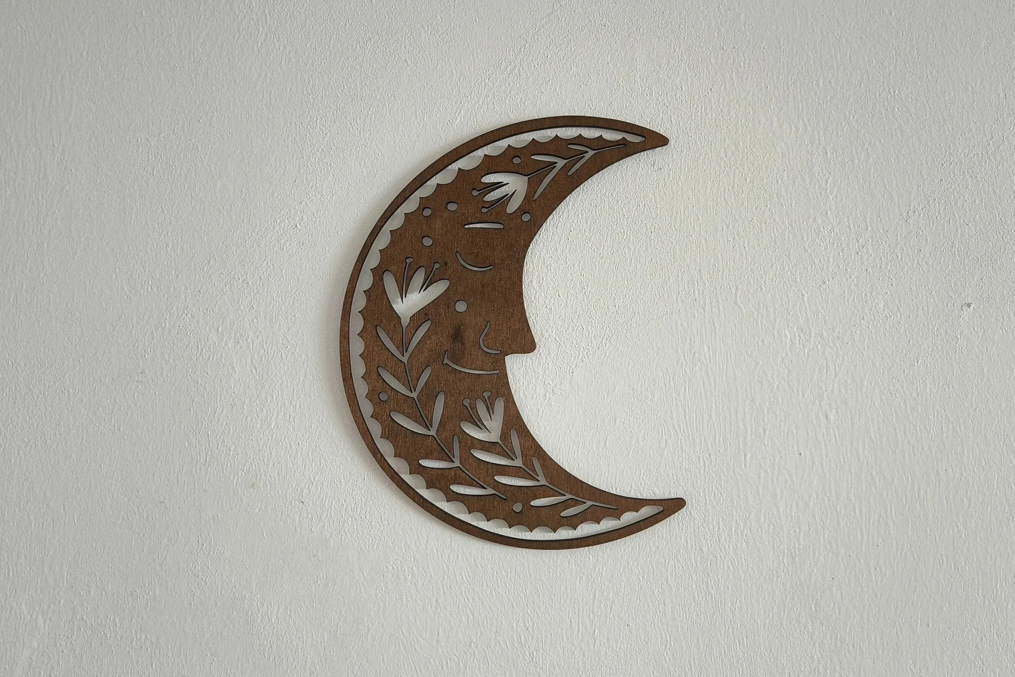 Oživte svůj interiér s elegantní dřevěnou ozdobou ve tvaru měsíce, která přináší do prostoru klidnou a romantickou atmosféru. Vyrobena z kvalitní 3 mm překližky v přírodním ořechovém odstínu, tato dekorace se snadno připevňuje pomocí přiložené oboustranné pásky.
