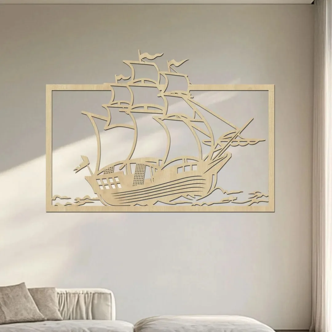Přineste do svého domova nádech dobrodružství a volnosti s elegantní dřevěnou stěnovou dekorací ve tvaru lodě na moři. Tento originální kus zachycuje plachetnici brázdící širé oceány a symbolizuje svobodu, sílu a odhodlání.