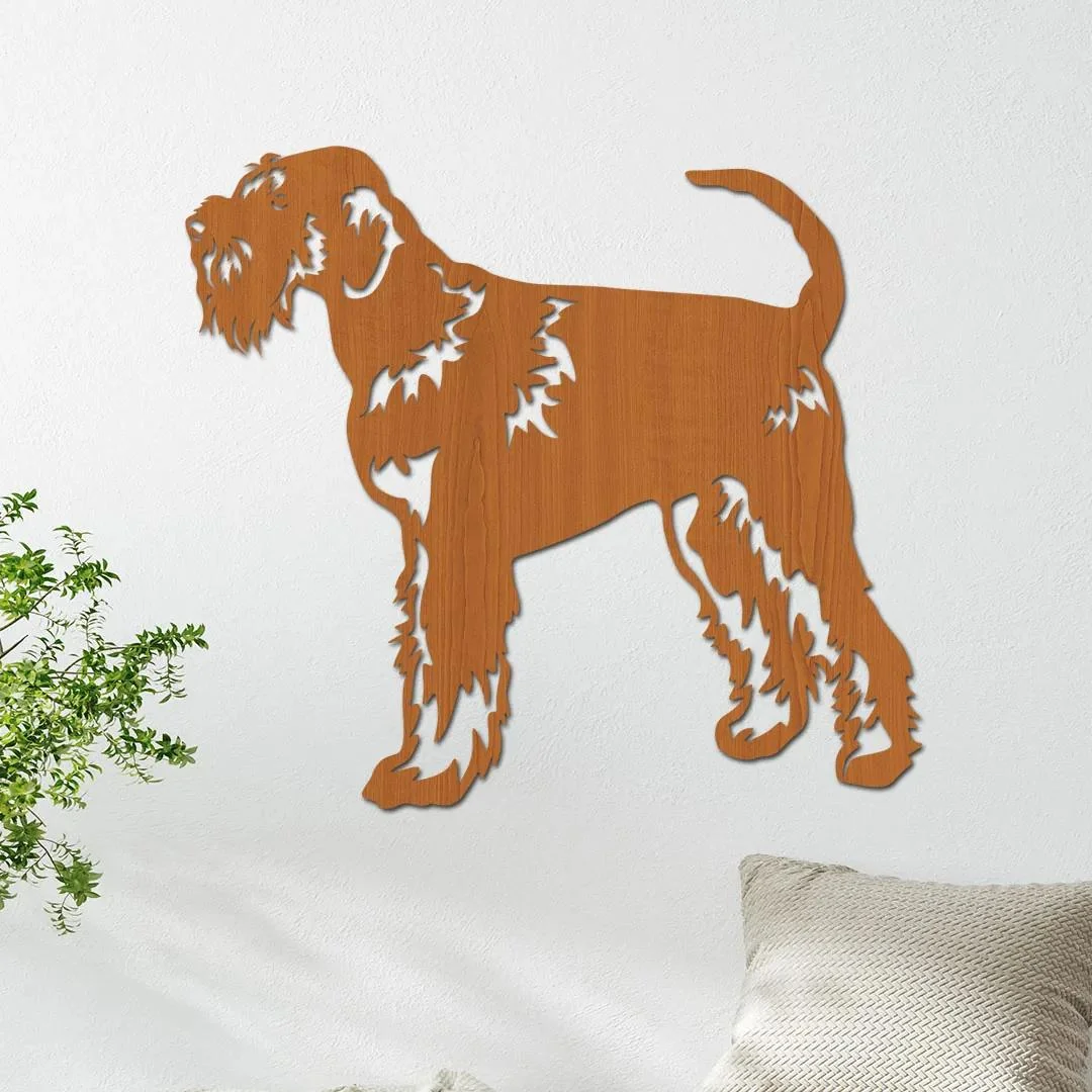 Stylová ručně vyřezávaná dřevěná dekorace s motivem velkého knírače je ideálním doplňkem pro milovníky psů a moderního interiéru. Tento elegantní kus, vyrobený z odolného HDF materiálu, přináší do vašeho domova přírodní atmosféru a jedinečný design.