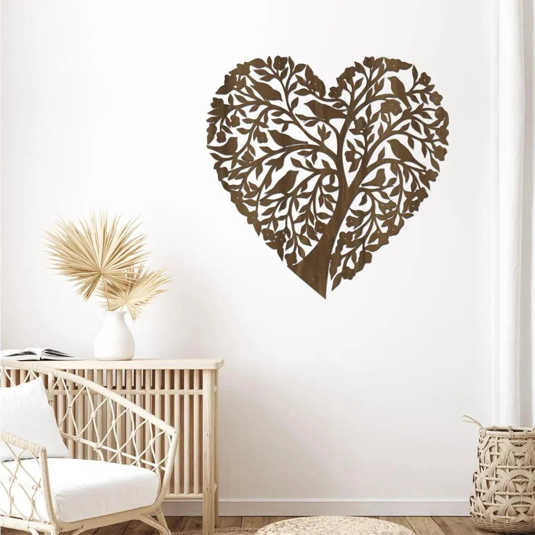 Elegantní dřevěná stěnová dekorace Zpívající srdce, vyrobená z kvalitní dřevovláknité desky s vysokou hustotou, která přináší nejen estetický vzhled, ale i symboliku spojení země a nebe, moudrosti a stability.