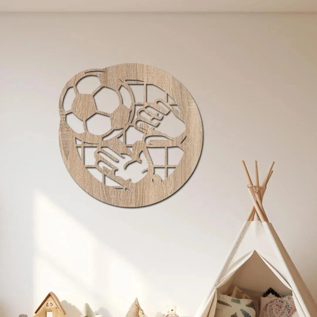 Oživte dětský pokoj s originální dřevěnou stěnovou dekorací s motivem fotbalu, ideální pro malého sportovního nadšence. Vyrobená z kvalitního dřevovláknitého materiálu, přináší do interiéru přírodní atmosféru a vysokou odolnost.