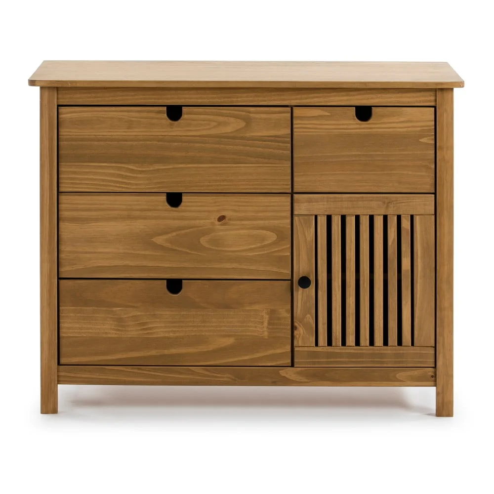 Elegantní a praktická dřevěná komoda Marckeric Bruna je ideálním řešením pro uložení vašeho oblečení, doplňků nebo drobností. Vyrobena z kvalitního dřeva, nabízí pevnost a dlouhou životnost, díky čemuž si zachová svůj vzhled i po letech používání.