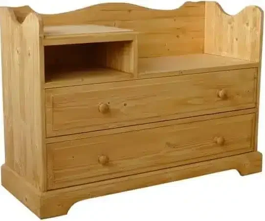 Dřevěná lavice pro telefon je vyrobena z masivního smrkového dřeva a lze ji objednat i v borovicové variantě pro jiný vizuální dojem. V horní části je praktická police na telefon a pod ní naleznete dvě prostorné zásuvky, které usnadní uskladnění drobných předmětů.