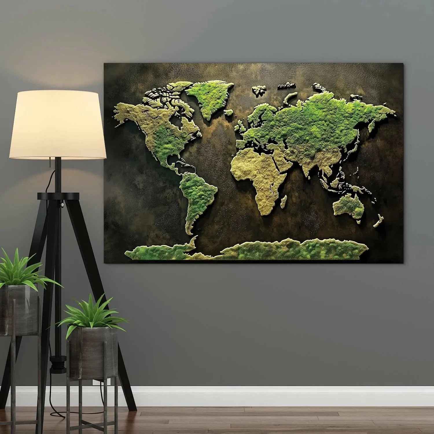 Stylová dřevěná mapa světa s originálním mechovým motivem přináší do vašeho interiéru spojení moderního designu a přírodní estetiky. Tento umělecký kus je vyroben z kvalitní tvrzené dřevěné desky, na kterou je technologií nejvyšší kvality tištěn detailní motiv s výraznými, sytými barvami.