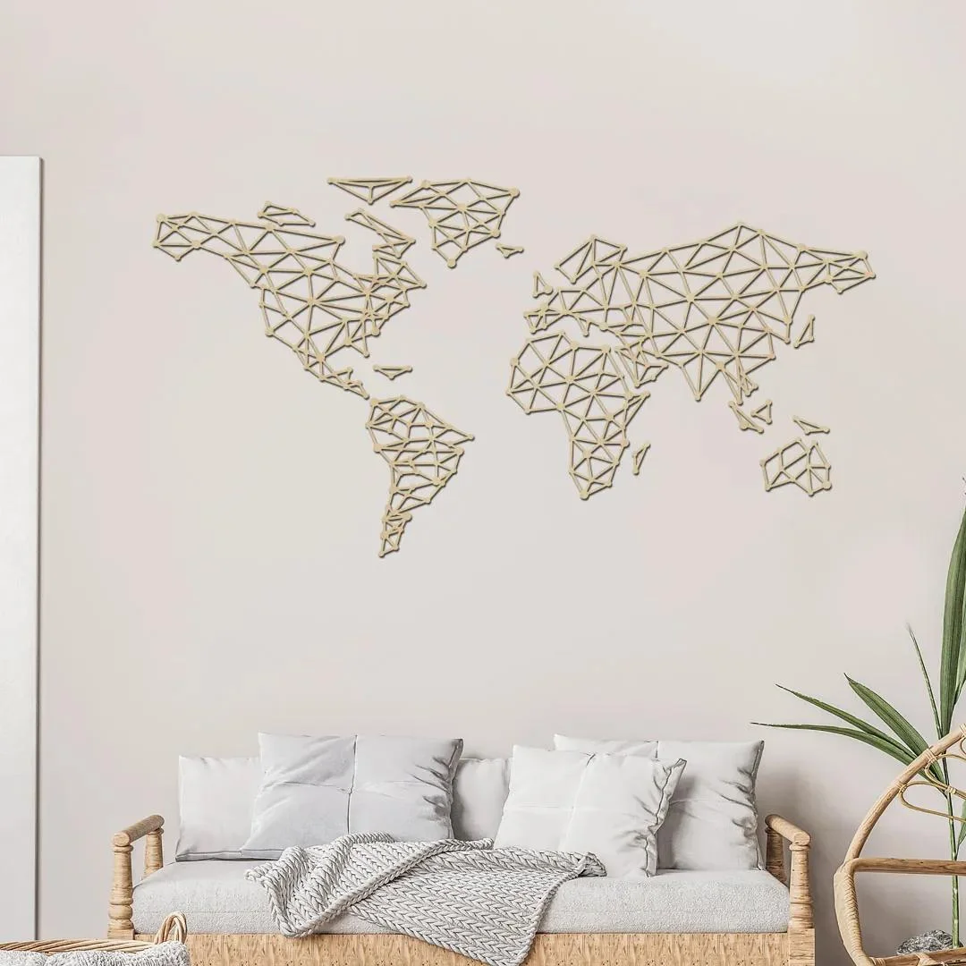 Objevte jedinečný design s naší ručně vyráběnou dřevěnou mapou světa TRIANGLE, která kombinuje moderní geometrický styl s přírodními prvky. Vyrobena z kvalitního dřevovláknitého materiálu HDF, nabízí elegantní a odolný dekor, který oživí každý interiér.