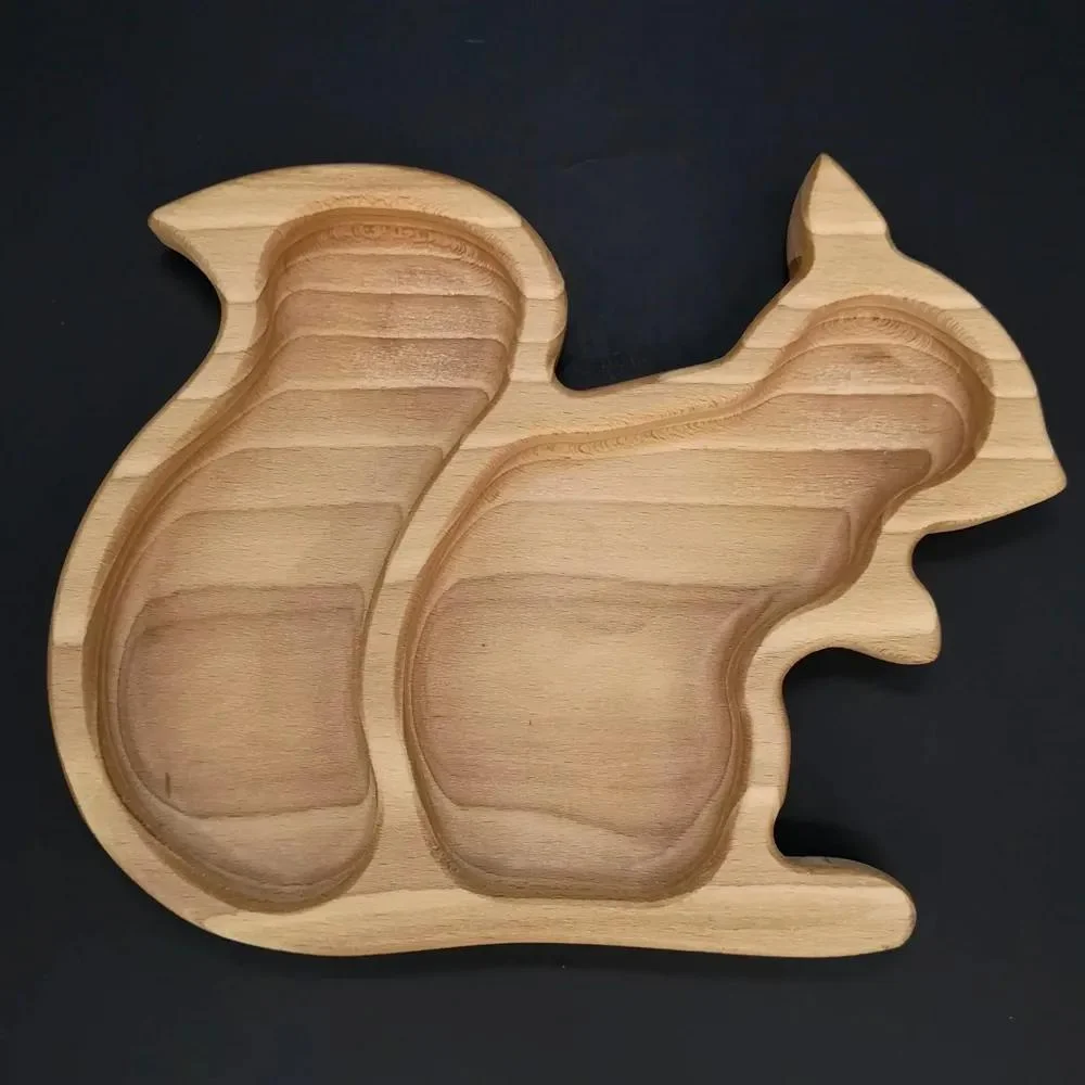 Stylová a praktická dřevěná miska ve tvaru roztomilé veverky, vyrobena z pevného bukového dřeva. S rozměry přibližně 21,5 x 17 cm je ideální pro servírování drobných pochutin nebo jako dekorativní prvek do vaší kuchyně.