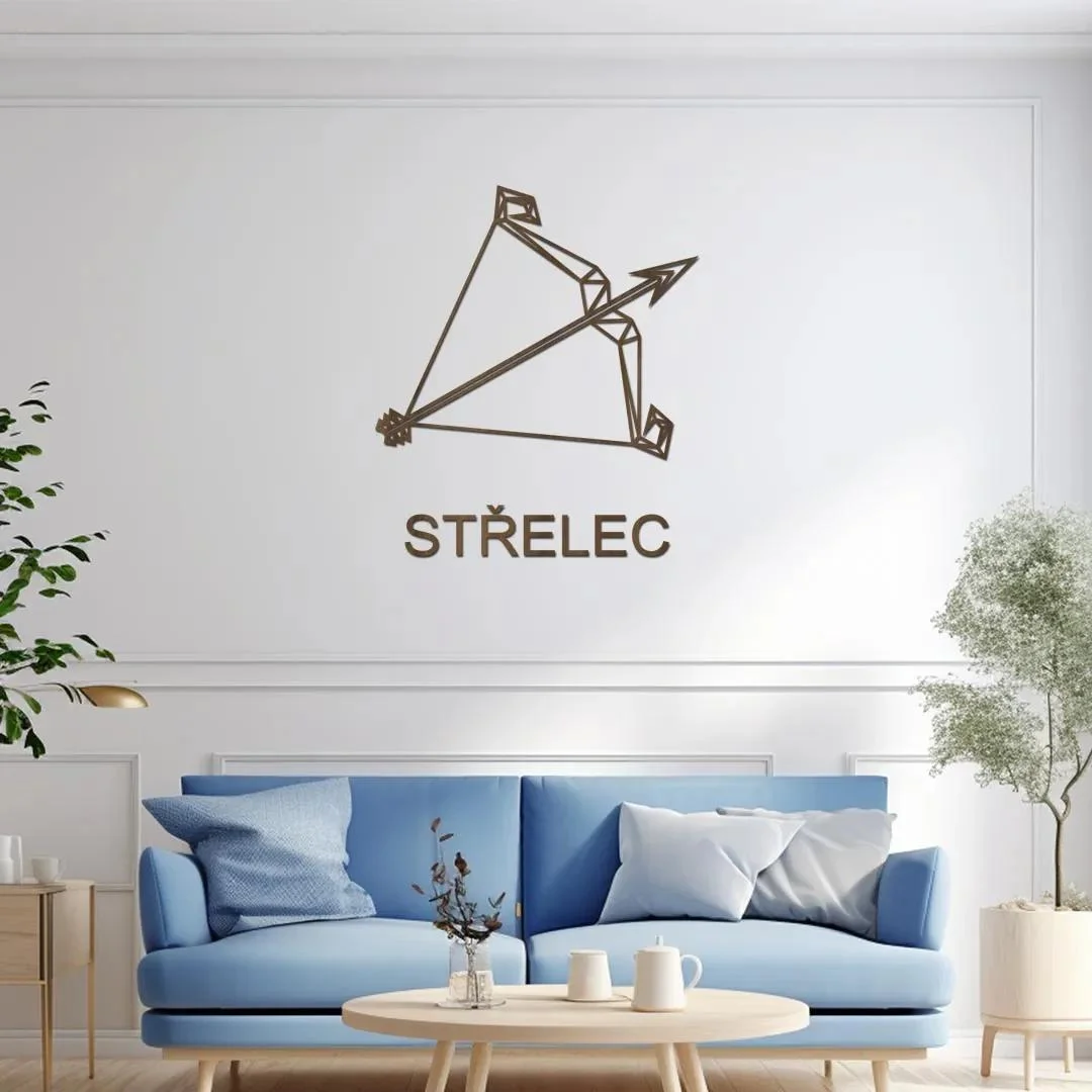 Objevte jedinečný dekorativní prvek, který oživí váš interiér a zároveň odráží osobnost znamení Střelce (23. listopadu – 21. prosince). Tento stylový dřevěný motiv představuje symbol ohnivého znamení, známého svou vášní, zvědavostí a touhou po dobrodružství.