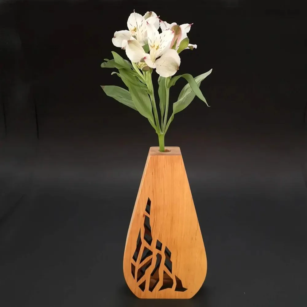 Vnitřní skleněná zkumavka umožňuje snadné aranžování květin, zatímco povrch je ošetřen přírodním včelím voskem pro dlouhou životnost. Ideální doplněk do obýváku, ložnice nebo jako originální dárek pro milovníky designu a přírody.
