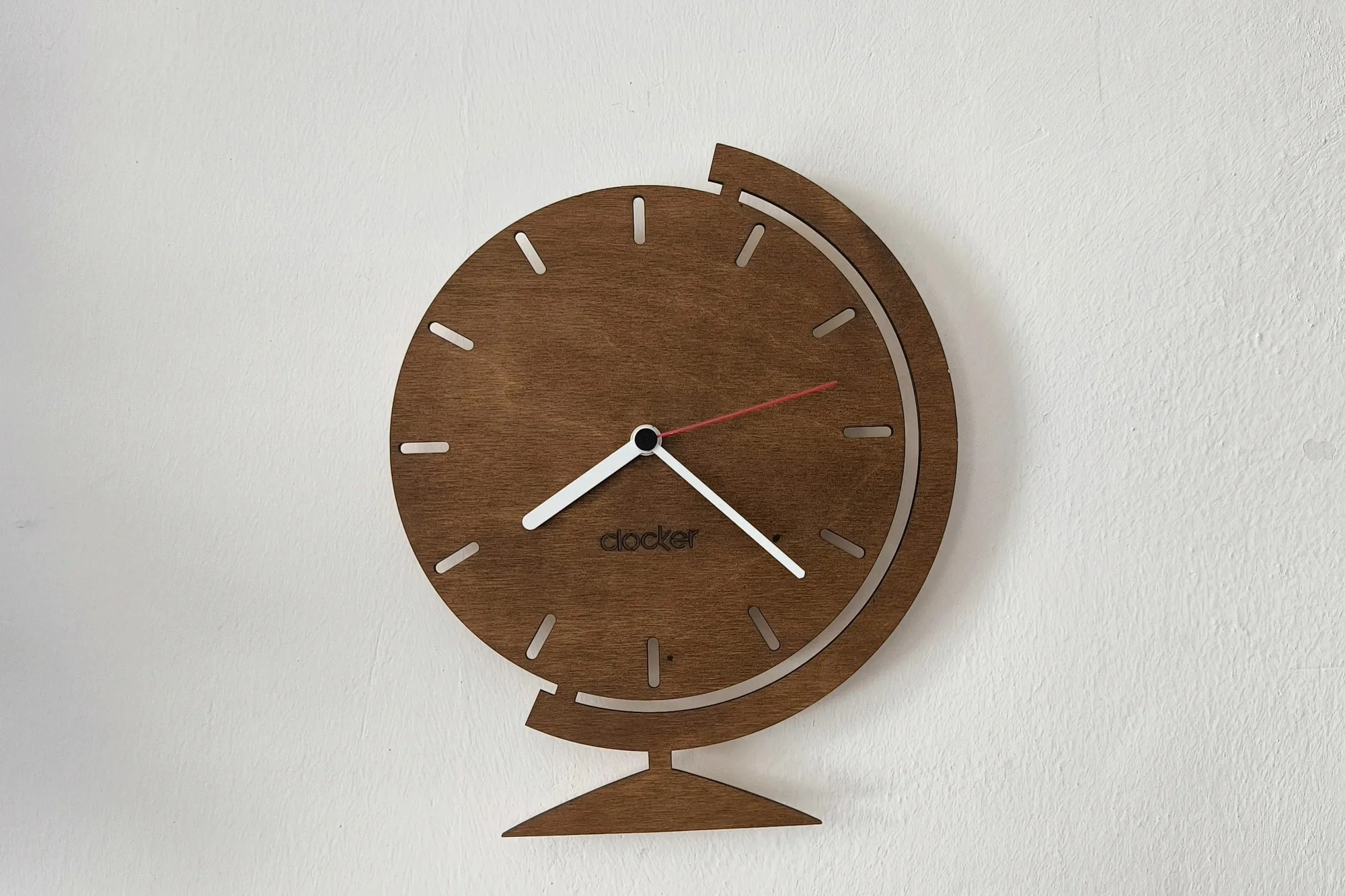 Stylové dřevěné hodiny Globe vyrobené z kvalitní 3mm březové překližky jsou ideálním doplňkem vašeho interiéru. Přesný quartz strojek zajišťuje spolehlivý čas, zatímco černé ručičky vkusně kontrastují s přírodním dřevem.