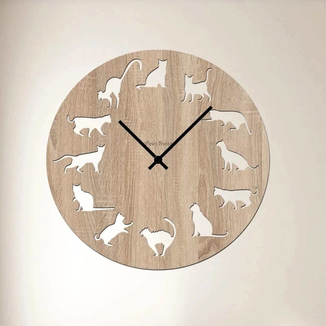 Stylové dřevěné kočičí hodiny jsou ideálním doplňkem každého interiéru, který přidá na útulnosti a hravosti. Tyto nástěnné hodiny mají tichý strojek, díky čemuž nebudou rušit vaše soustředění nebo odpočinek. Vyberte si z různých barevných dekorů, například dub Sonoma, a zvolte si velikost 35x35 cm, která se dokonale hodí na každý povrch. Černé nebo zlaté ručičky zvýrazní jejich vzhled a dodají hodinkám moderní nádech. Hodiny jsou vyrobeny z kvalitního HDF materiálu, což zaručuje jejich dlouhou životnost a stabilitu. Díky kovovému háčku je jejich zavěšení na zeď jednoduché a rychlé. Tento produkt je perfektní volbou pro milovníky originálního designu a praktických doplňků do domácnosti.