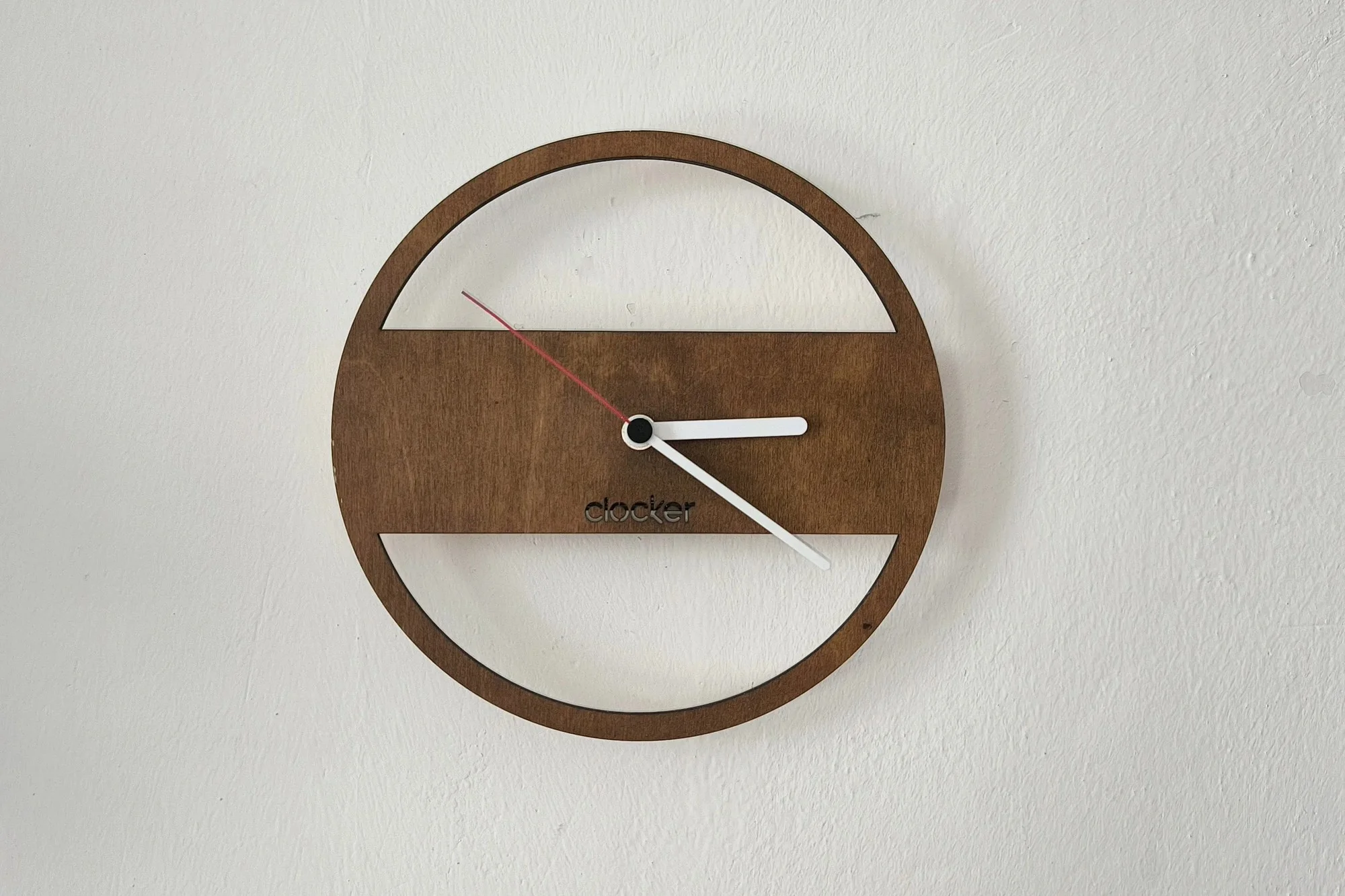 Elegantní dřevěné hodiny značky Clocker v minimalistickém designu s bílými ručičkami. Ciferník s rozměry 22 x 22 cm je vyroben z pečlivě vybrané 3mm březové překližky, která dodává výrobku přírodní vzhled a odolnost.