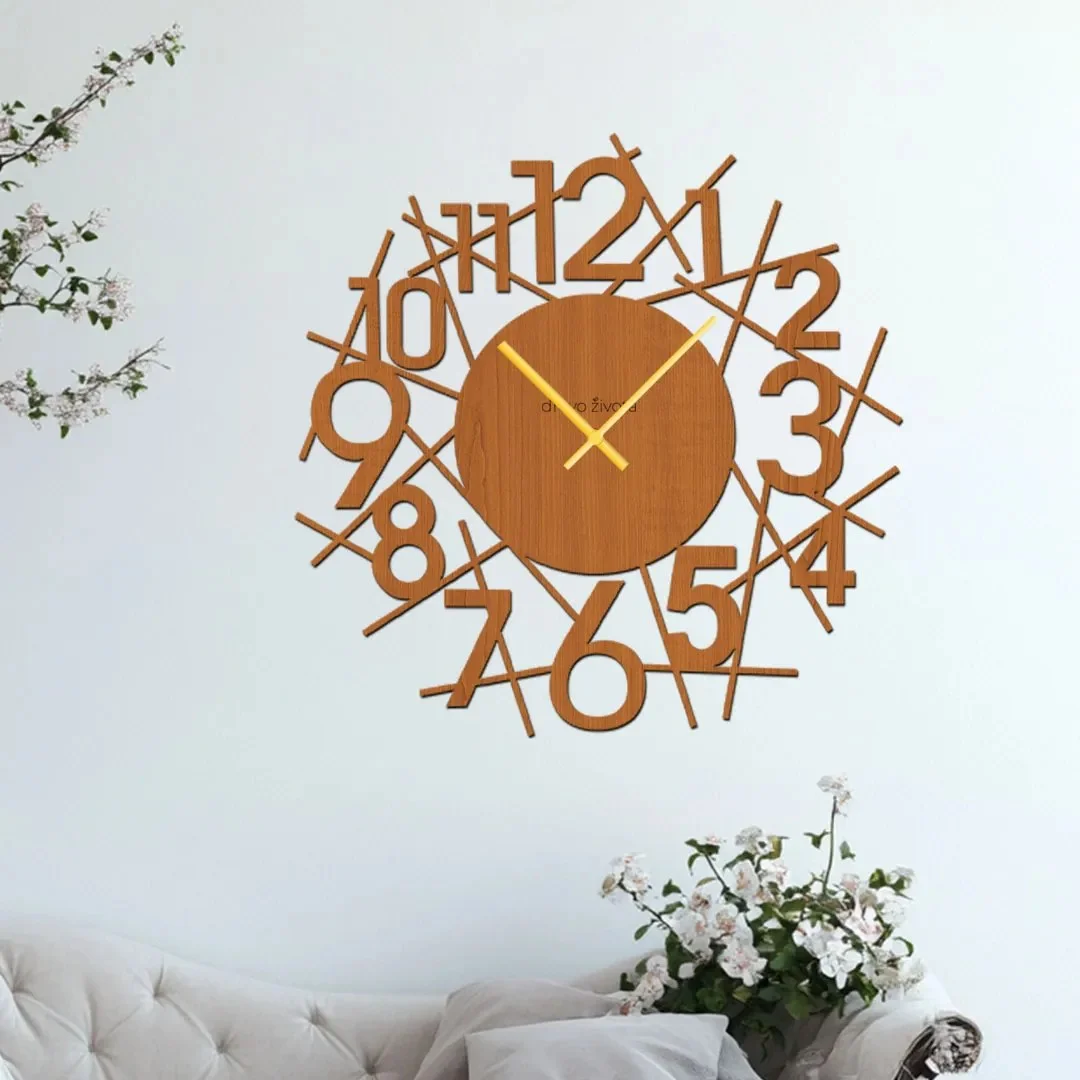 Elegantní hodiny na stěnu NUMERO přinášejí do vašeho domova harmonii přírodního dřeva a moderního designu. Jejich minimalistický vzhled s pečlivě vyřezanými číslicemi a jemnými liniemi dodá každému interiéru příjemnou atmosféru a nadčasový šarm.