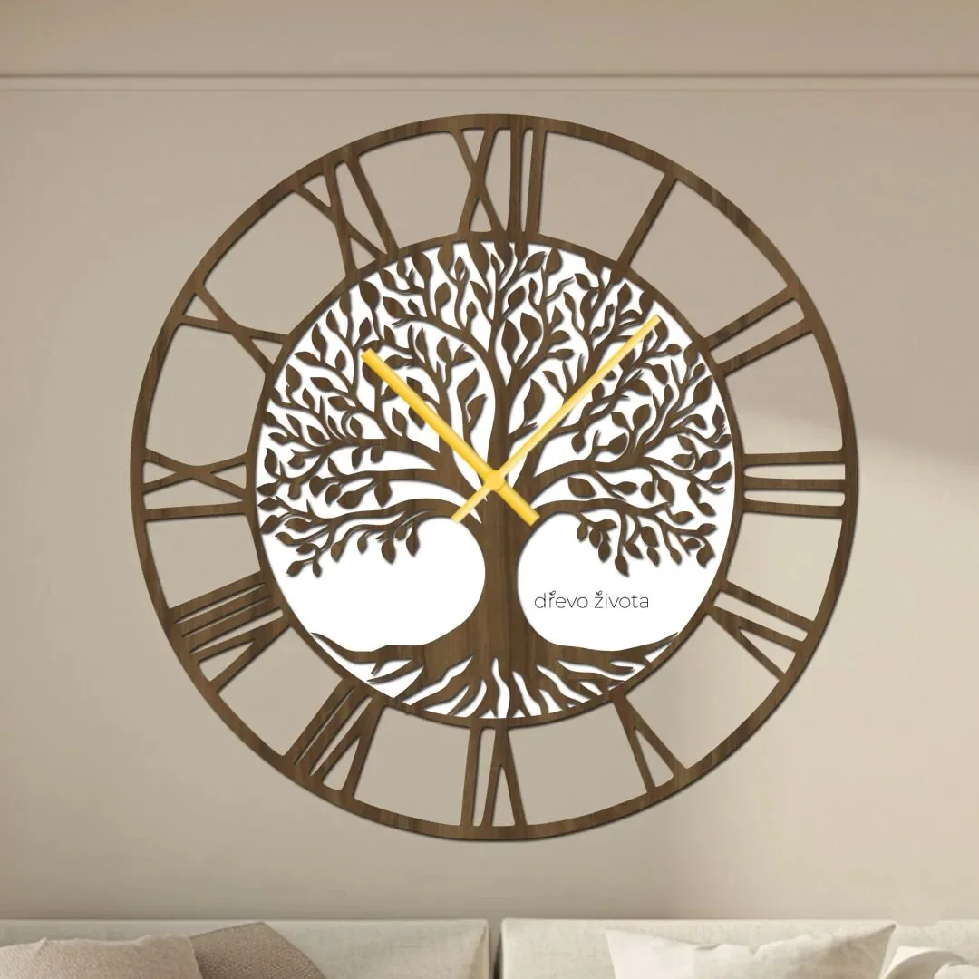 Parametry produktu Dřevěné nástěnné hodiny Strom – elegantní dekor s motivem života