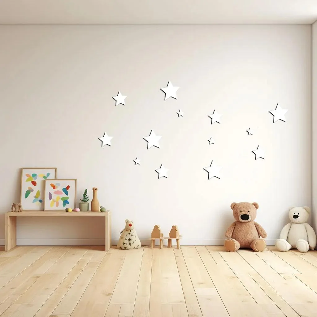 Vyberte si z několika rozměrů a vytvořte si vlastní vesmír plný záře: největší hvězdy měří 8x8 cm, středně velké 6x6 cm a nejmenší 4x4 cm. Dekorace jsou vyrobeny z odolného dřevovláknitého HDF materiálu s tenkou 3mm tloušťkou a jsou dostupné v elegantní bílé barvě, která se hodí ke každému dětskému interiéru. Snadné přilepení je zajištěno samolepicí páskou na zadní straně, kterou jednoduše odstraníte a přilepíte na vámi zvolenou plochu. Pro větší dekorace doporučujeme použití hřebíčku nebo háčku pro pevné uchycení. Tento produkt je navržen a vyroben s péčí v České republice, což zaručuje vysokou kvalitu a dlouhou životnost. Vytvořte si jedinečnou noční oblohu nebo vesmírné dobrodružství přímo na stěně vašeho dětského pokoje!