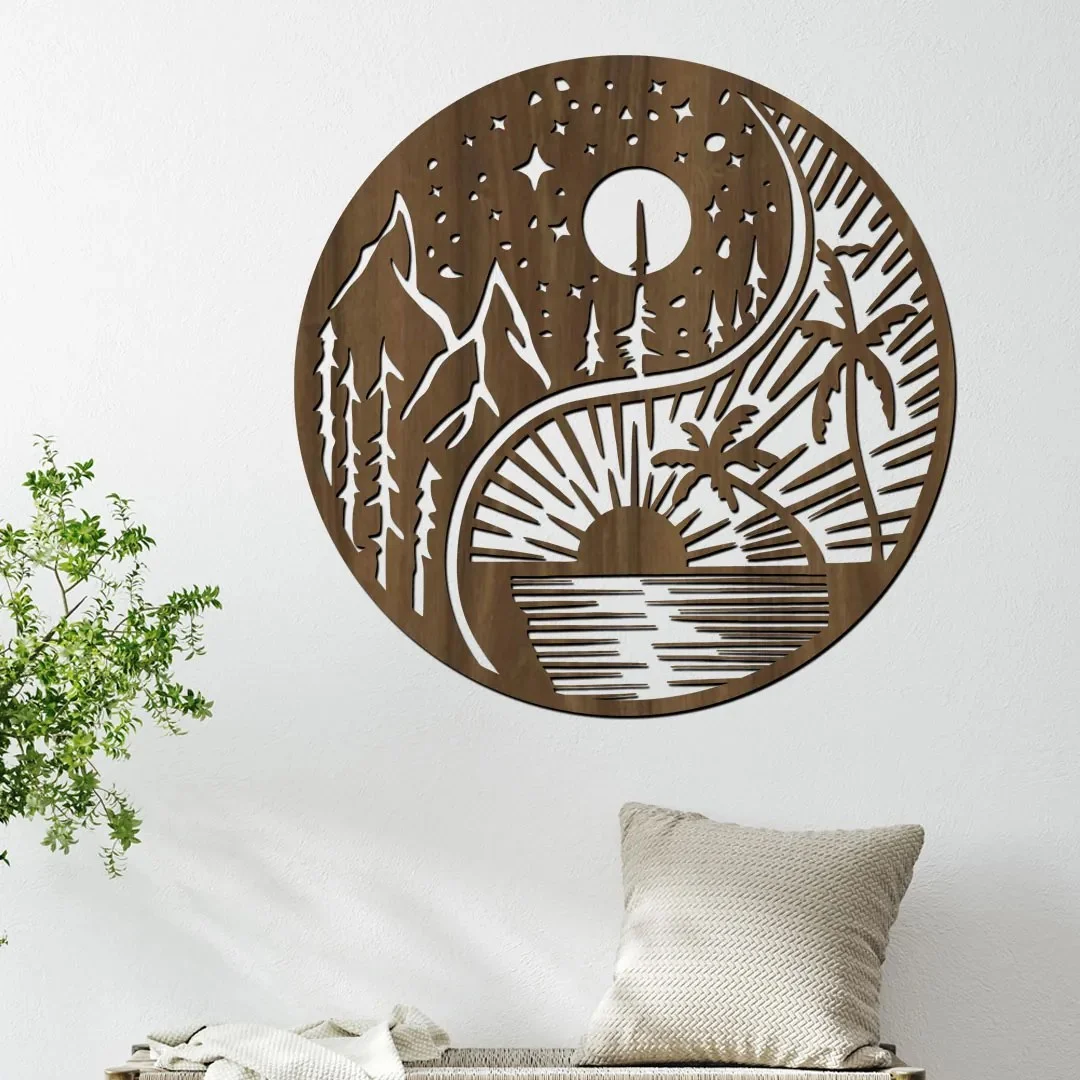 Objevte harmonii přírody s dřevěným obrazem Den a Noc, který symbolizuje rovnováhu mezi světlem a tmou, sluncem a měsícem. Tento originální dekorativní prvek je pečlivě vyřezaný z kvalitního HDF materiálu a je dostupný v různých barvách, které snadno sladíte s vaším interiérem. Díky svému designu vnese do vašeho domova klid, rovnováhu a přírodní krásu, ať už jej umístíte do moderního nebo rustikálního stylu.