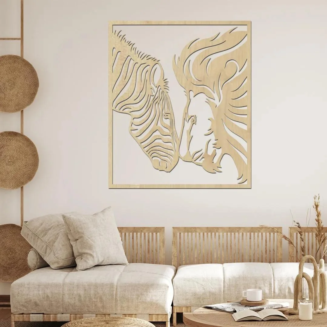 Oblíbená dekorace na stěnu s motivem majestátního lva a zebry přináší do vašeho domova kus divoké přírody. Vyberte si z několika velikostí a barevných variant, které snadno sladíte s vaším interiérem.