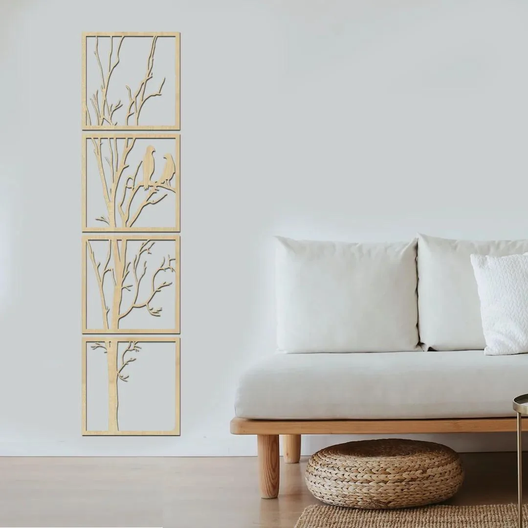 Elegantní čtyřdílný dřevěný obraz Ptačí strom představuje symbol svobody, radosti a spojení s přírodou. Tento moderní dekorativní prvek, sestávající ze čtyř samostatných panelů, přináší do vašeho interiéru klid a harmonii.