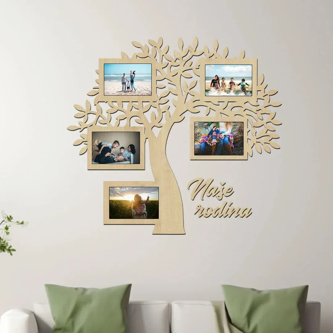 Stylový dřevěný fotorámeček ve tvaru stromu, ideální pro zobrazení více fotografií rodiny či blízkých. Tento dekorativní kus symbolizuje pevné rodinné vazby a sdílené vzpomínky, které vám každý den připomenou, jak je důležité mít kolem sebe milované osoby.