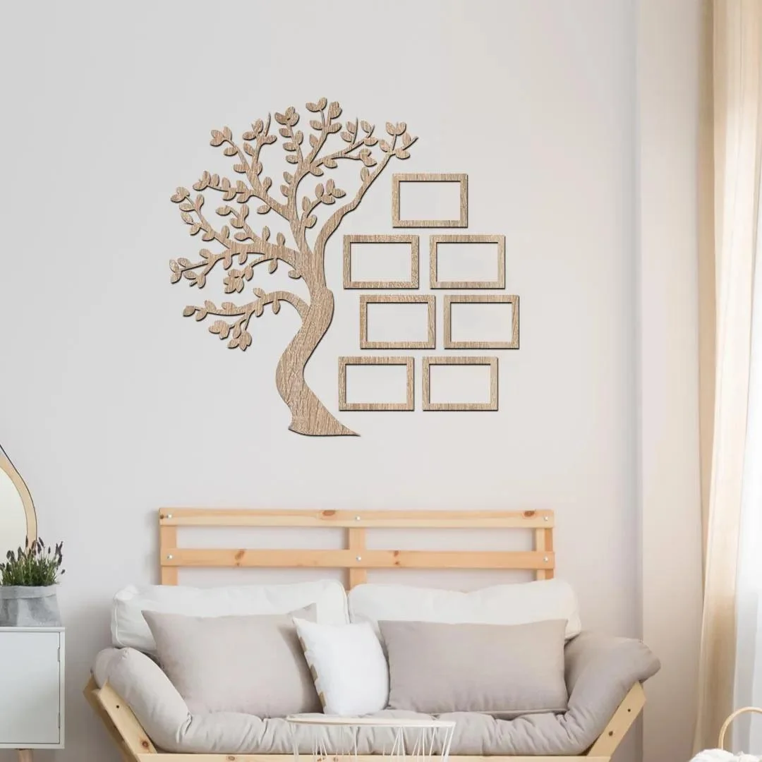 Stylový dřevěný rodostrom s možností osadit až sedmi fotografiemi je ideálním doplňkem interiéru, který přinese osobní atmosféru a teplo. Vyrobený z kvalitní dřevovláknité desky HDF v Česku, je tento dekorativní prvek dostupný v různých barevných variantách a rozměrech, takže ho snadno sladíte s vaším stylem.