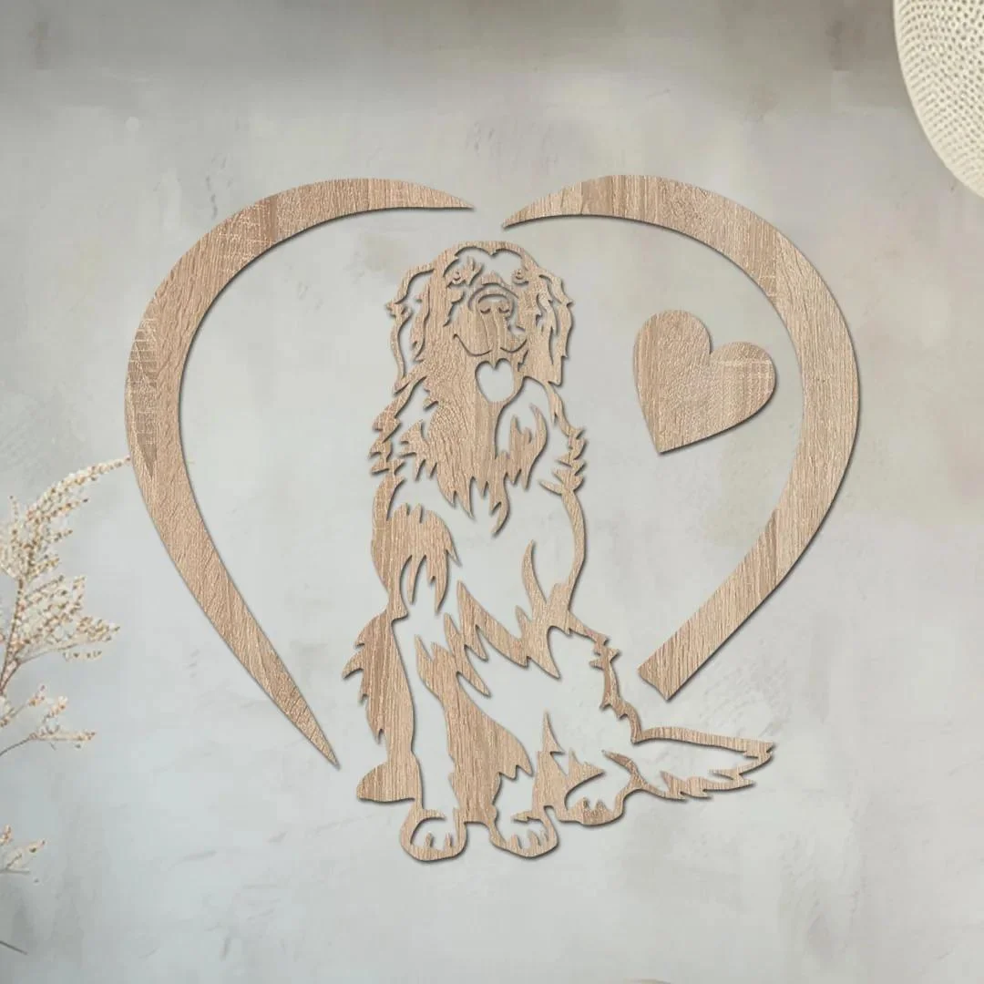Elegantní dřevěný dekorativní obraz ve tvaru srdce zachycuje věrného a oddaného psa Hovawarta, symbolizující hlubokou lásku a ochranu. Tento originální kousek je pečlivě vyroben z kvalitního HDF materiálu, který zaručuje dlouhou životnost, odolnost vůči vlhkosti a snadnou údržbu.