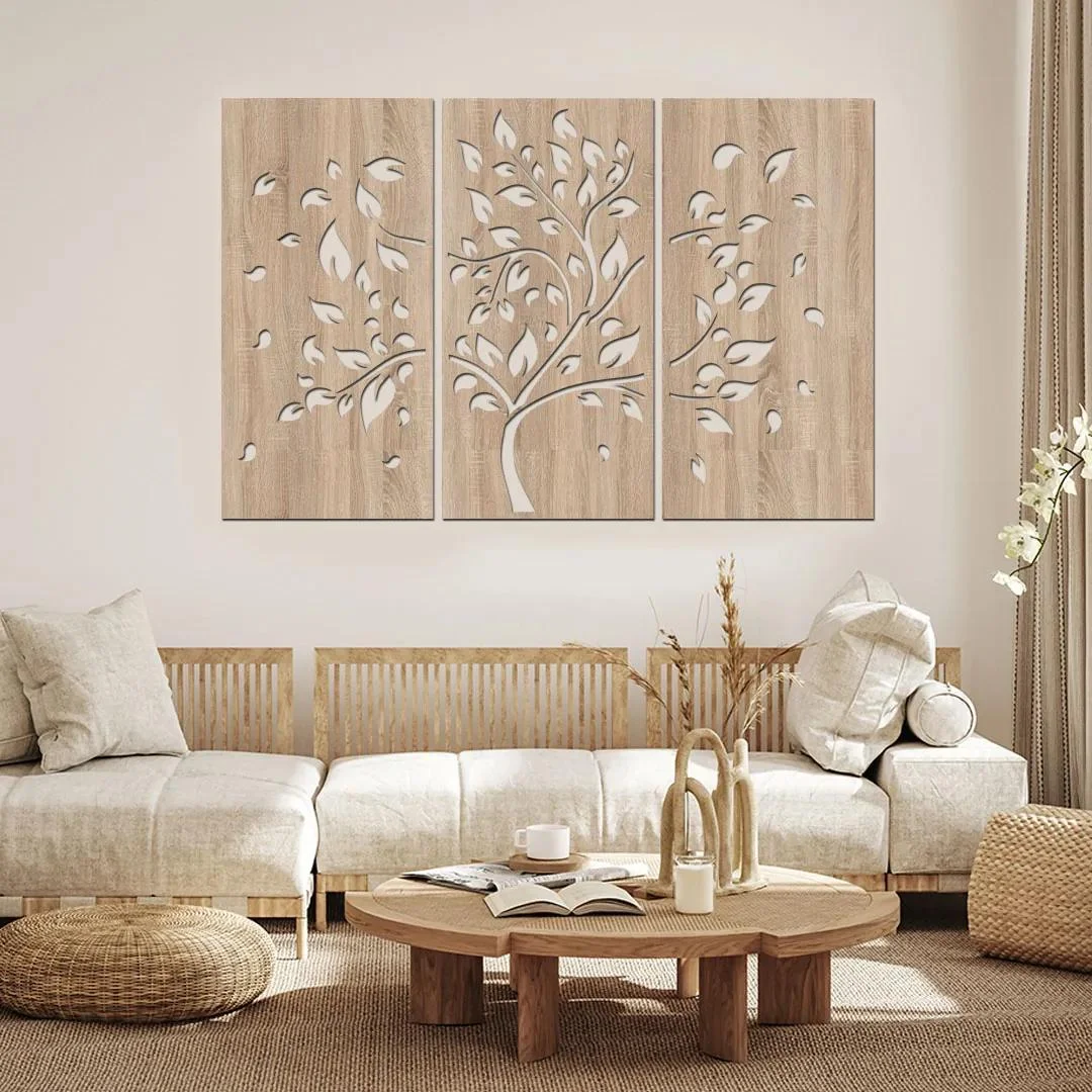 Přineste do svého domova nebo kanceláře teplo a přírodní atmosféru s naším trojdílným dřevěným stromem Podzim. Tento originální obraz je vyroben z kvalitní vysokohustotní dřevovláknité desky (HDF), která je šetrná k životnímu prostředí a zdravotně nezávadná.