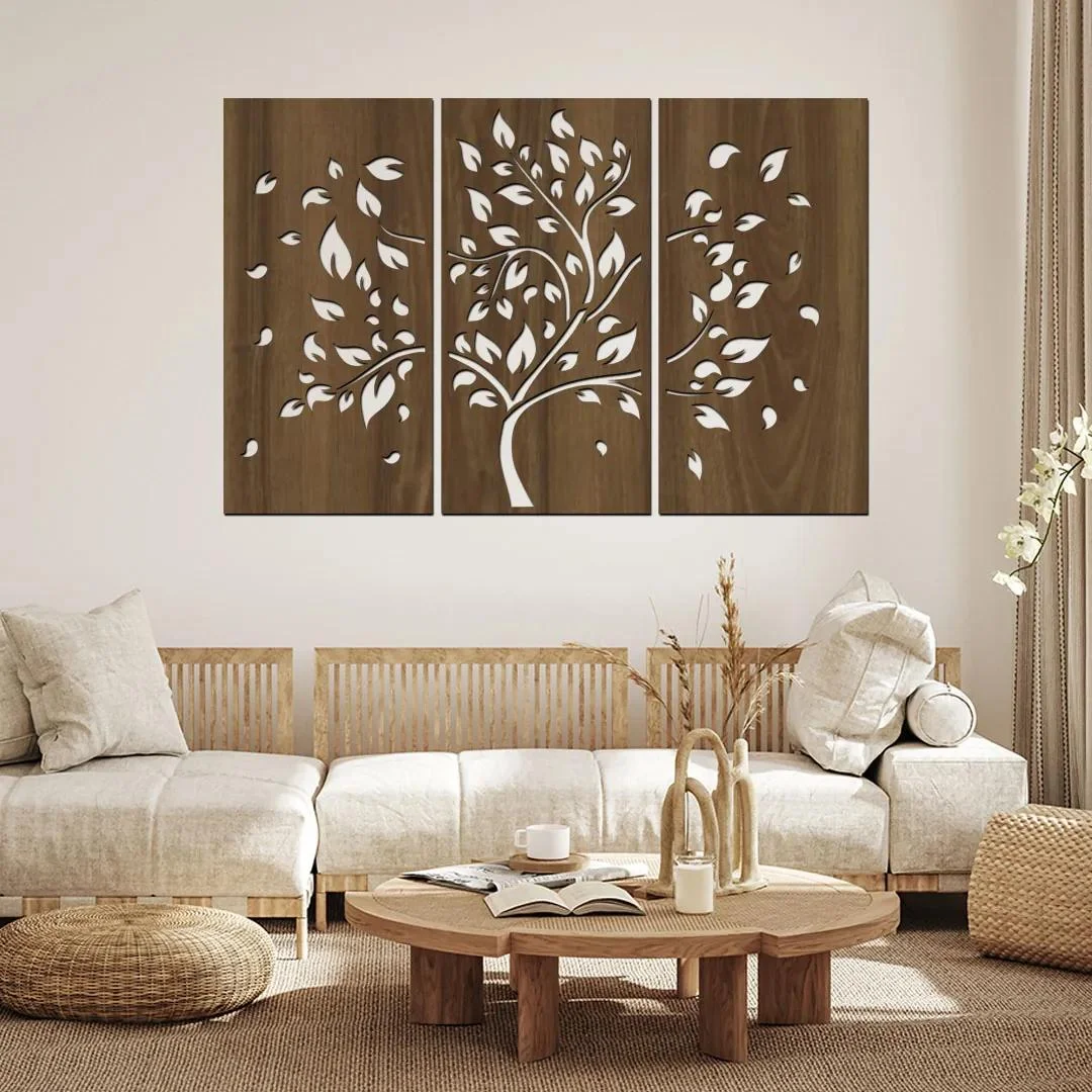 Oživte svůj domov nebo kancelář jedinečným třídílným dřevěným obrazem s motivem stromu v podzimní atmosféře. Tento originální dekor je vyroben z kvalitní dřevovláknité desky vysoké hustoty (HDF), která je nejen odolná a lehká, ale také šetrná k životnímu prostředí.