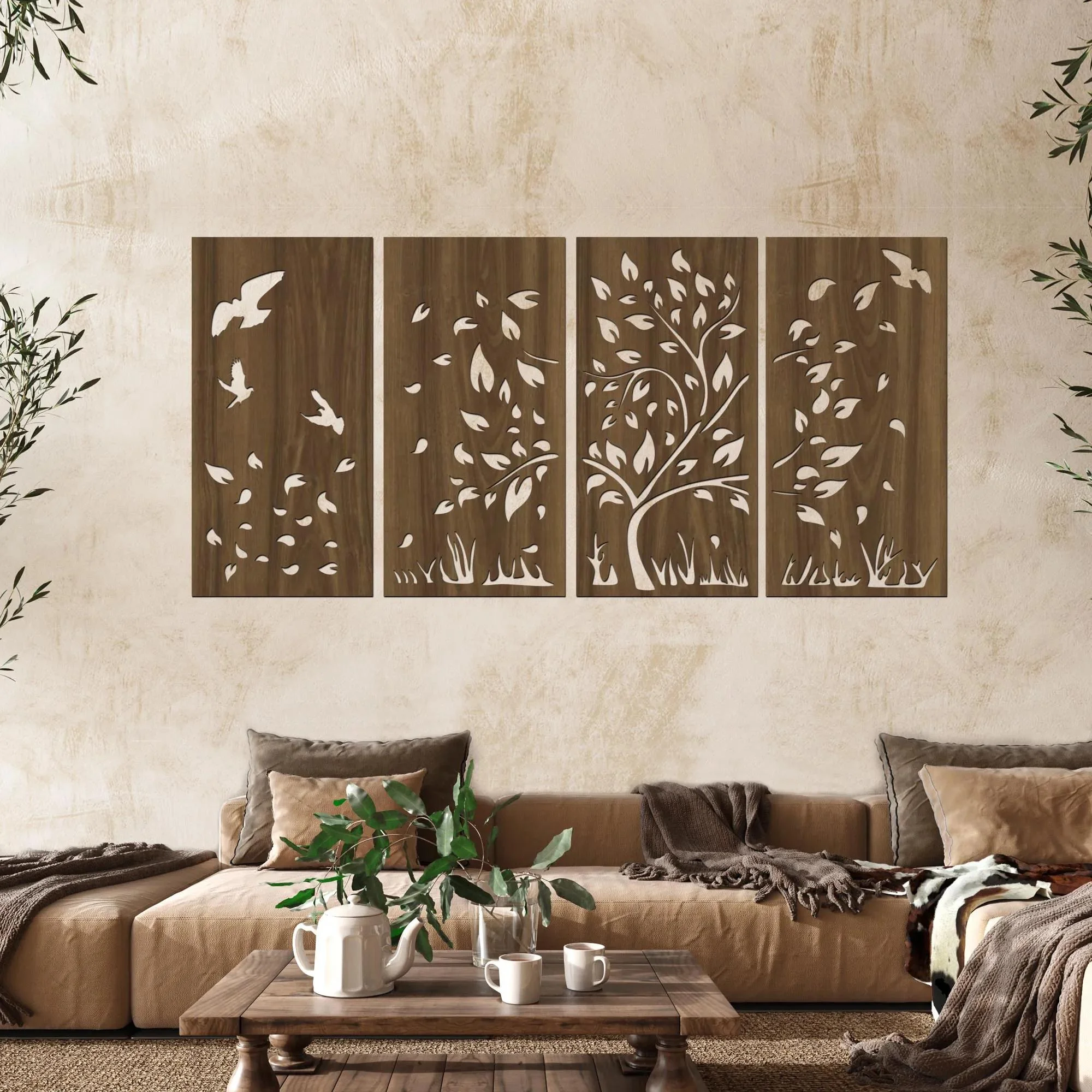 Objevte jedinečný dřevěný strom PODZIM II ve formě elegantní čtyřdílné dekorace, která zachycuje kouzlo podzimního období. Tento originální motiv s jemně padajícím listím symbolizuje cyklus života, klid a proměnu přírody, čímž přináší do vašeho interiéru pocit harmonie a útulnosti. Díky rozdělení do čtyř částí získává obraz na vzdušnosti a je možné jej variabilně umístit podle prostoru a vkusu.