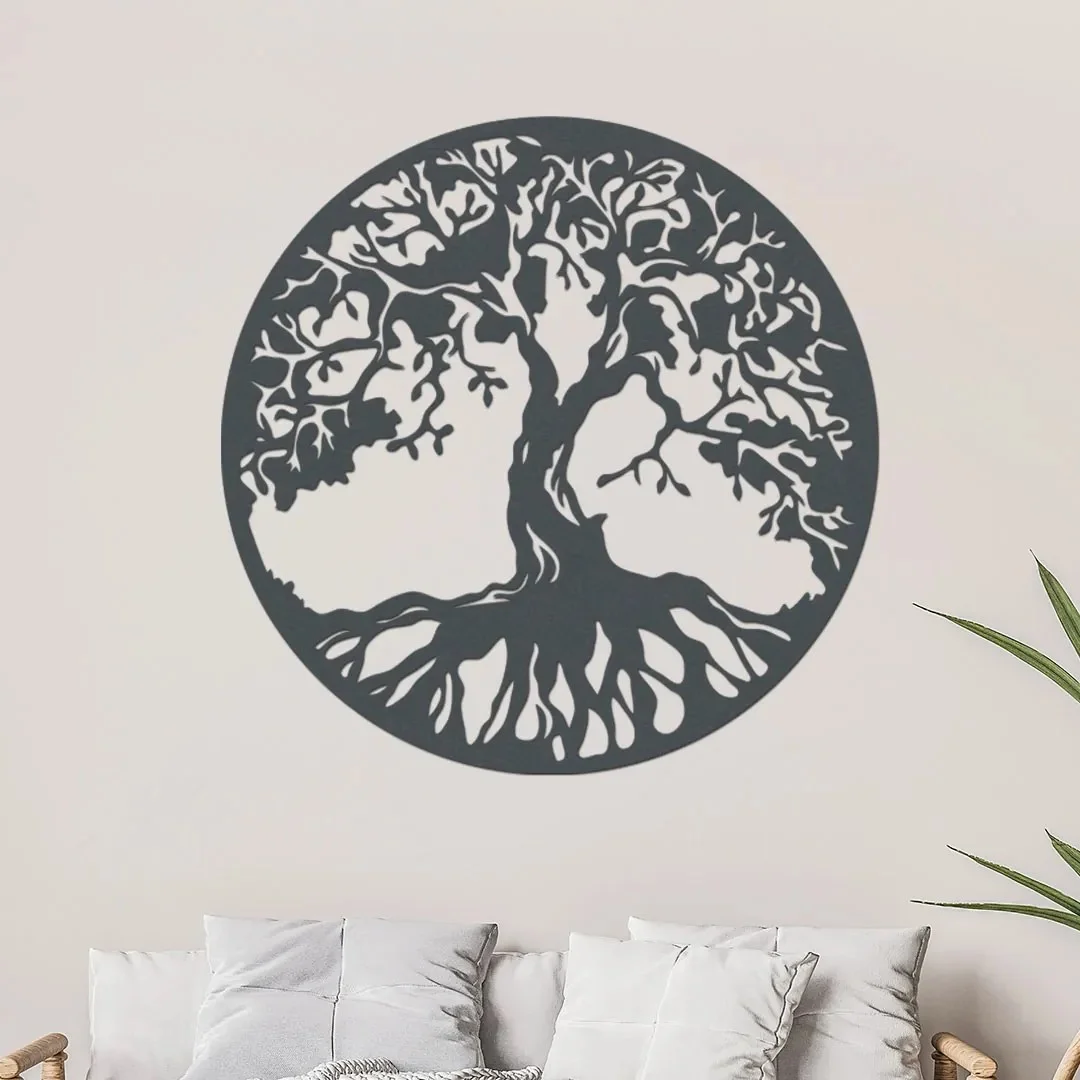 Ozdobte svůj domov elegantním dřevěným stromem života, který představuje spojení s přírodou a proudění života. Tento ručně vyřezávaný dekor v moderním antracitovém odstínu o průměru 40 cm přinese do vašeho interiéru harmonii a pozitivní energii.